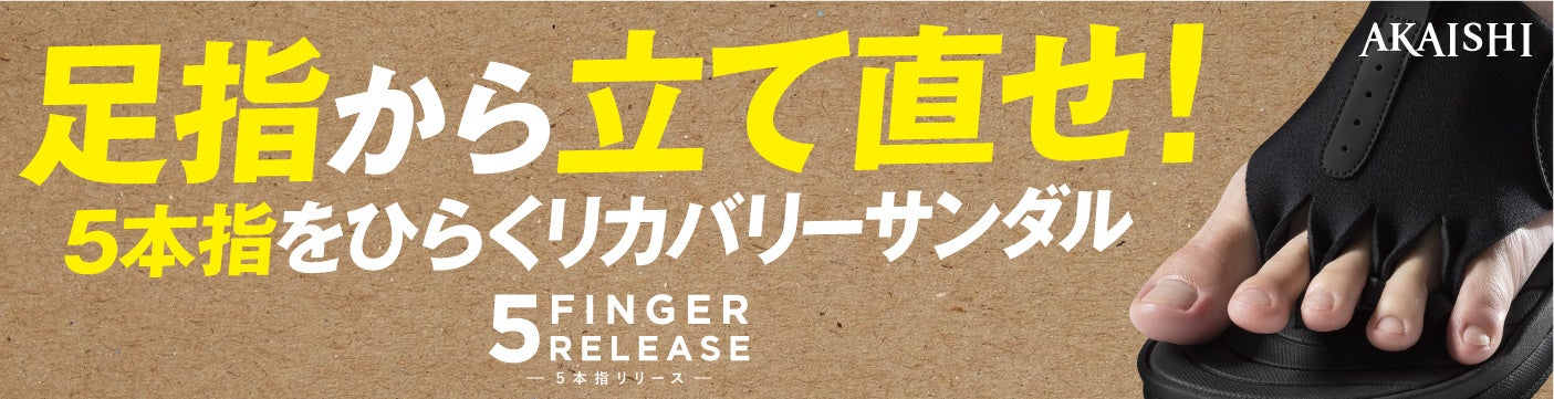 足のお悩みに特化した靴を研究開発しているメーカー株式会社AKAISHI(本社:静岡県静岡市、代表取締役:赤石恒一)は、2021年の発売より好評いただいておりますリカバリーサンダル【フットリリース】シリーズより、第3弾となる新商品「フットリリース 5本指リリース」を2026年4月24日(金)より販売開始いたします。