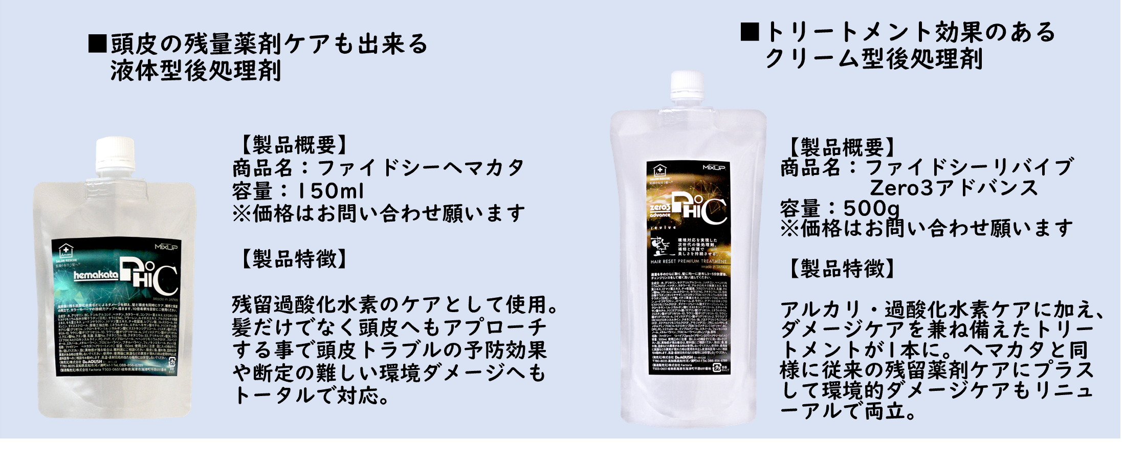 髪と頭皮に合わせた残留薬剤ケアが出来る2品を同時にリリース