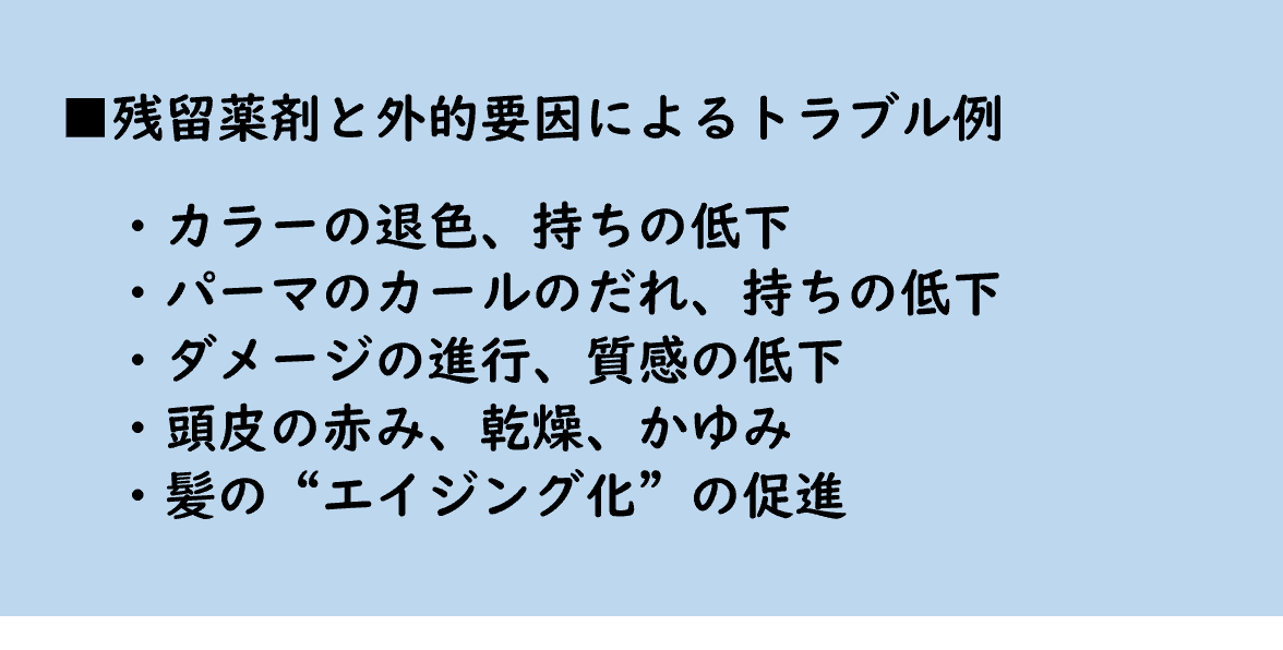 【1】残留薬剤をケアし、施術によるダメージを最小化
