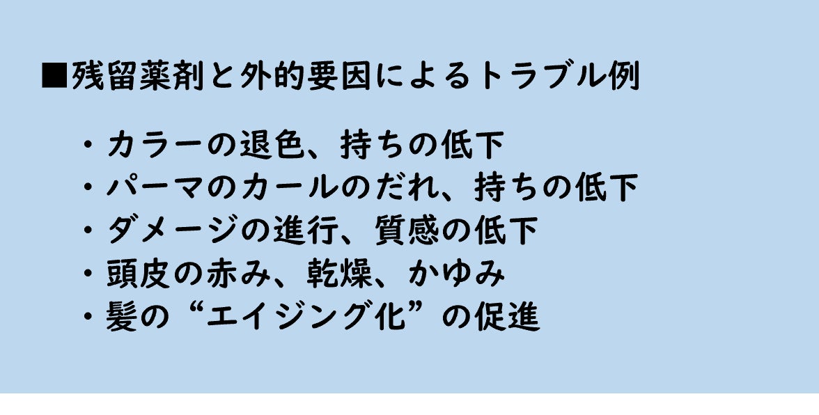 カラー・パーマ後の髪や頭皮に残る薬剤成分へアプローチし、ダメージの原因を
