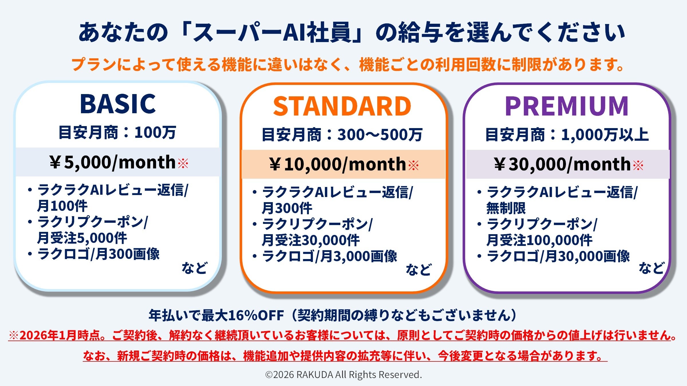 なお、新規ご契約時の価格は、機能追加や提供内容の拡充等に伴い、今後変更となる場合があります。