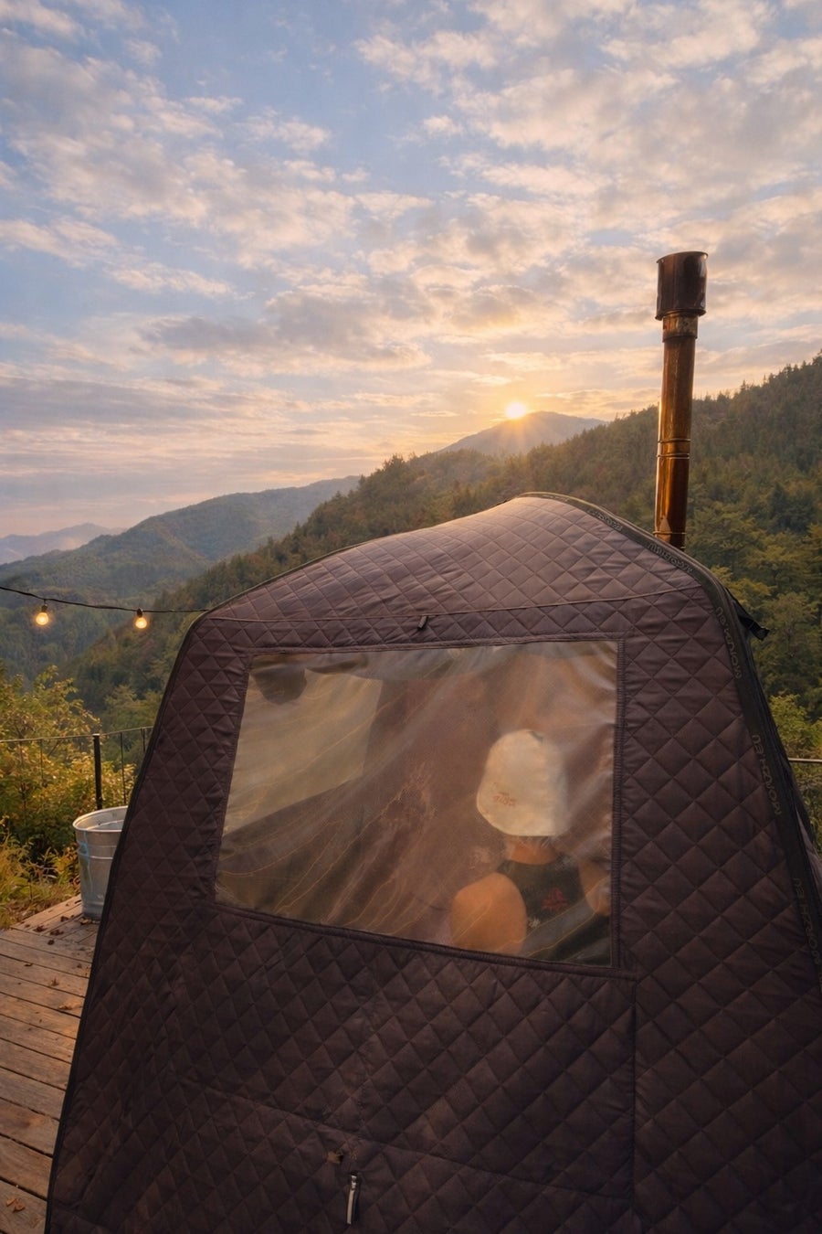 焚き火のあたたかさ、澄んだ空気、移ろう山の表情。 サウナと薪風呂は、冬がいちばんの贅沢です。