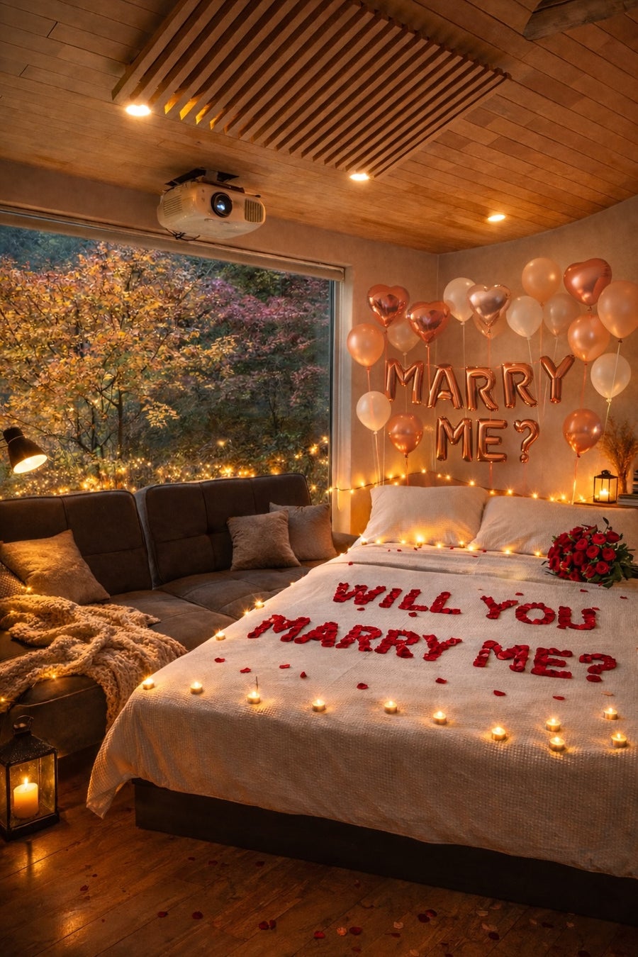 ・ベッドルームをバルーンやフラワーで装飾するサプライズ演出 ・キャンドルや花びらを用いた、薪風呂での演出 ・メッセージカードや小物を組み合わせた空間演出 など
