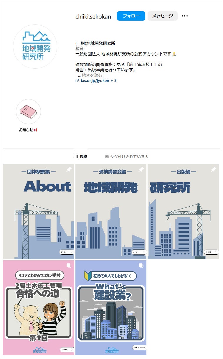 施工管理技士育成の雄 地域開発研究所が公式instagramアカウントを開設 建設業界の基礎知識や最新の試験情報を発信!