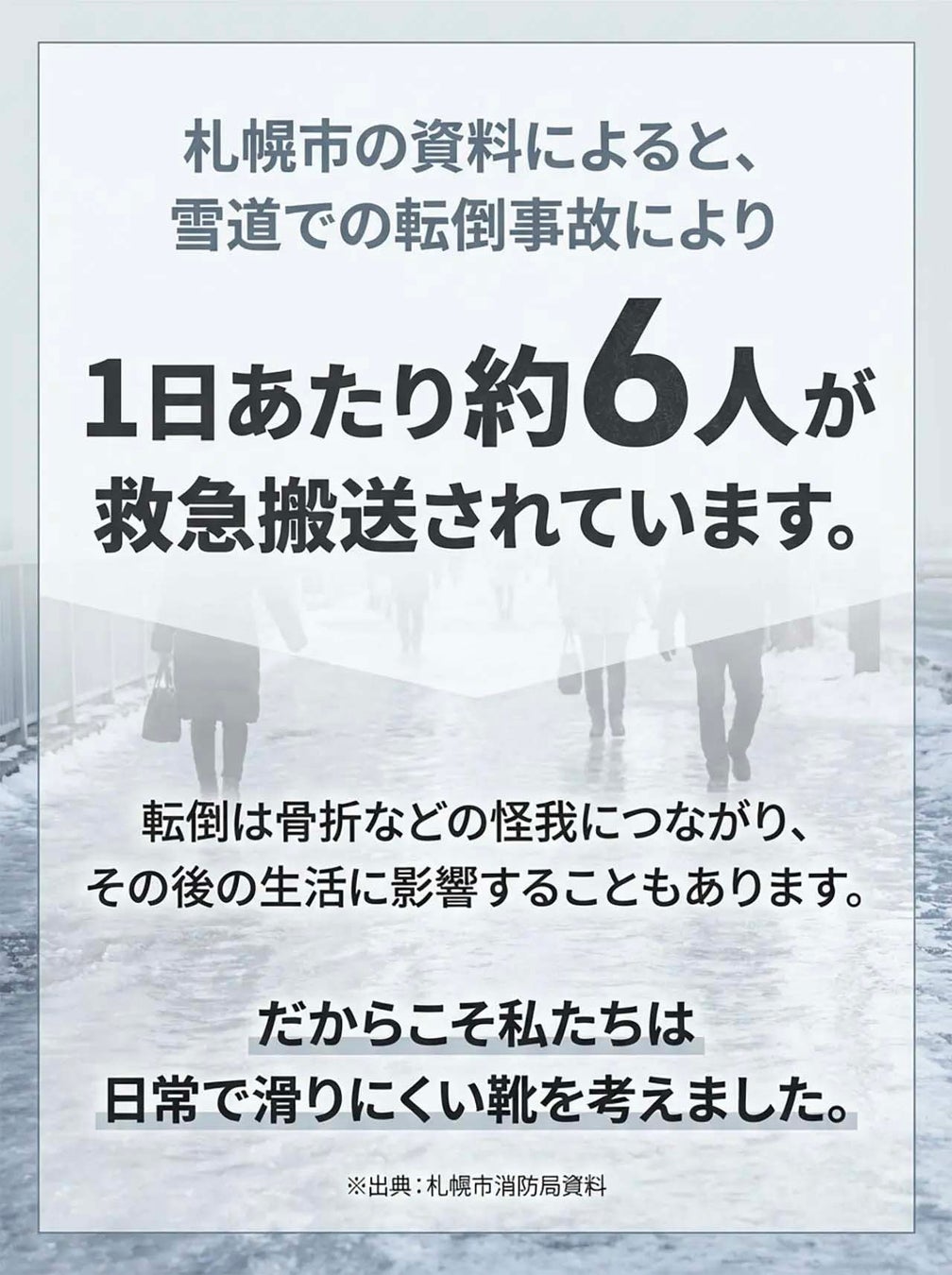 本製品は、北海道出身の開発メンバーが「日常的に滑りやすい環境」での経験をもとに企画されました。