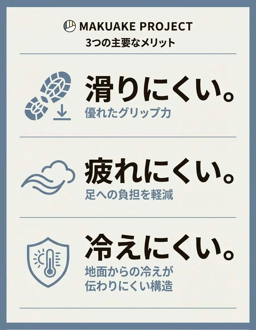 北海道発の防滑思想を日常に。「普通の日を守る」シューズがクラウドファンディングで支持拡大https://www.makuake.com/project/gramix/