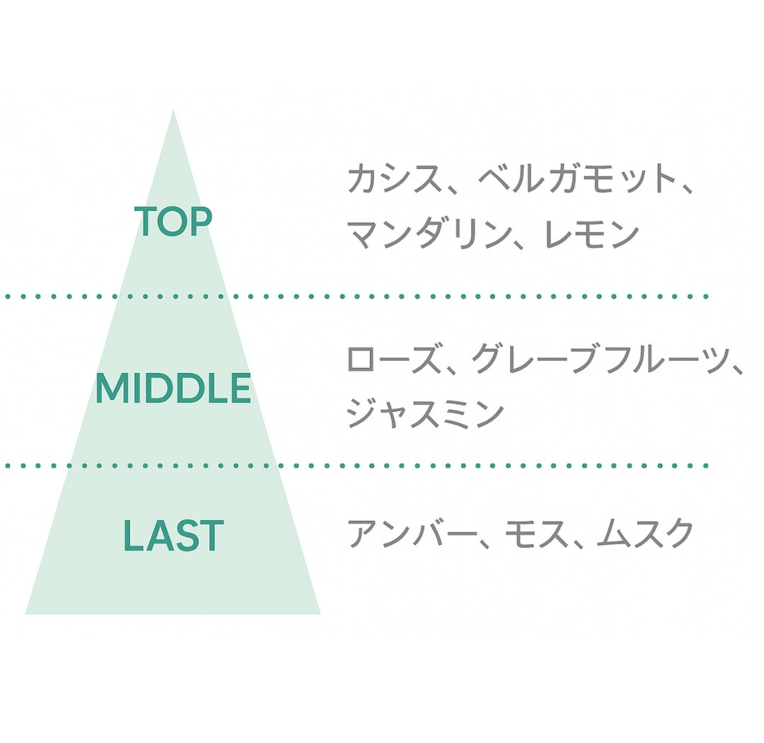 軽やかでフレッシュなベルガモットに、落ち着きのあるモスを組み合わせ、アクセントとしてすっきりとしたレモン精油を配合。爽やかさの中に深みを感じさせる香調は、リビングや玄関、ワークスペースなど、さまざまな空間に心地よくなじみます。