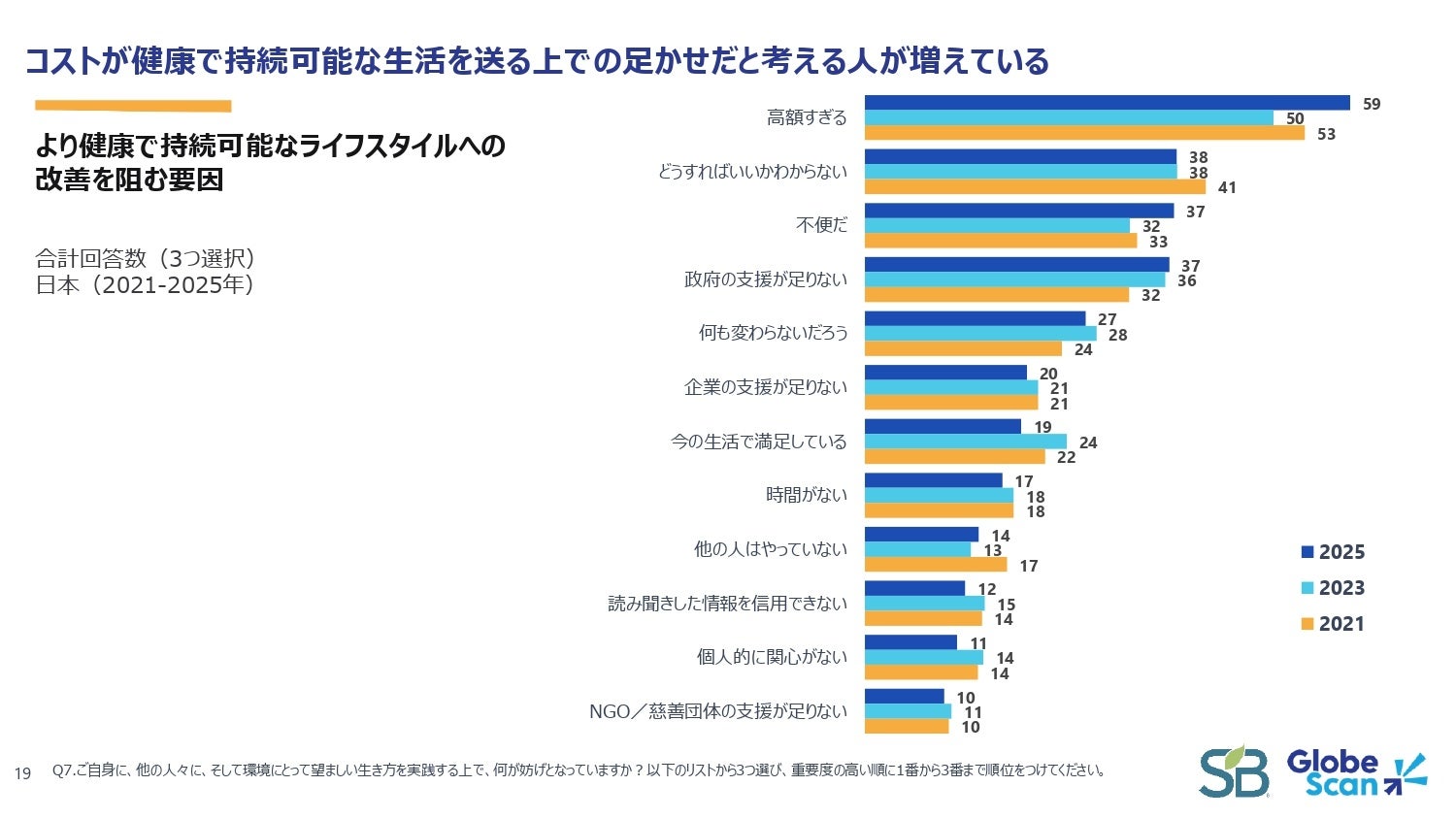 本調査は、グローブスキャンが世界33市場・約3万人に実施した、生活者のサステナビリティに対する意識と行動の変化を追跡する年次グローバル調査の日本版です。2025年の日本市場における結果からは、気候変動に対する危機感は依然として高いものの、物価高騰による「生活コストの上昇」が行動変容の大きな壁となっている現状が浮き彫りとなりました。