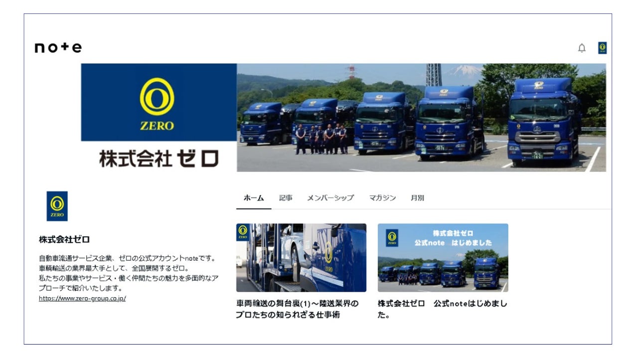 noteでは、当社が展開する車両輸送事業をはじめ、大型車両の整備、中古車オークションの開催・運営など、当社が手がける幅広い事業を多角的に紹介してまいります。さらに、ドライバーやドライバーを支えるさまざまなスタッフたちのプロフェッショナルな技術、DXの取り組み、車両輸送業務のバックヤードなど、魅力あふれるスタッフたちが織りなすゼロならではのストーリーを通じて、より深く当社の魅力をお伝えしていきます。