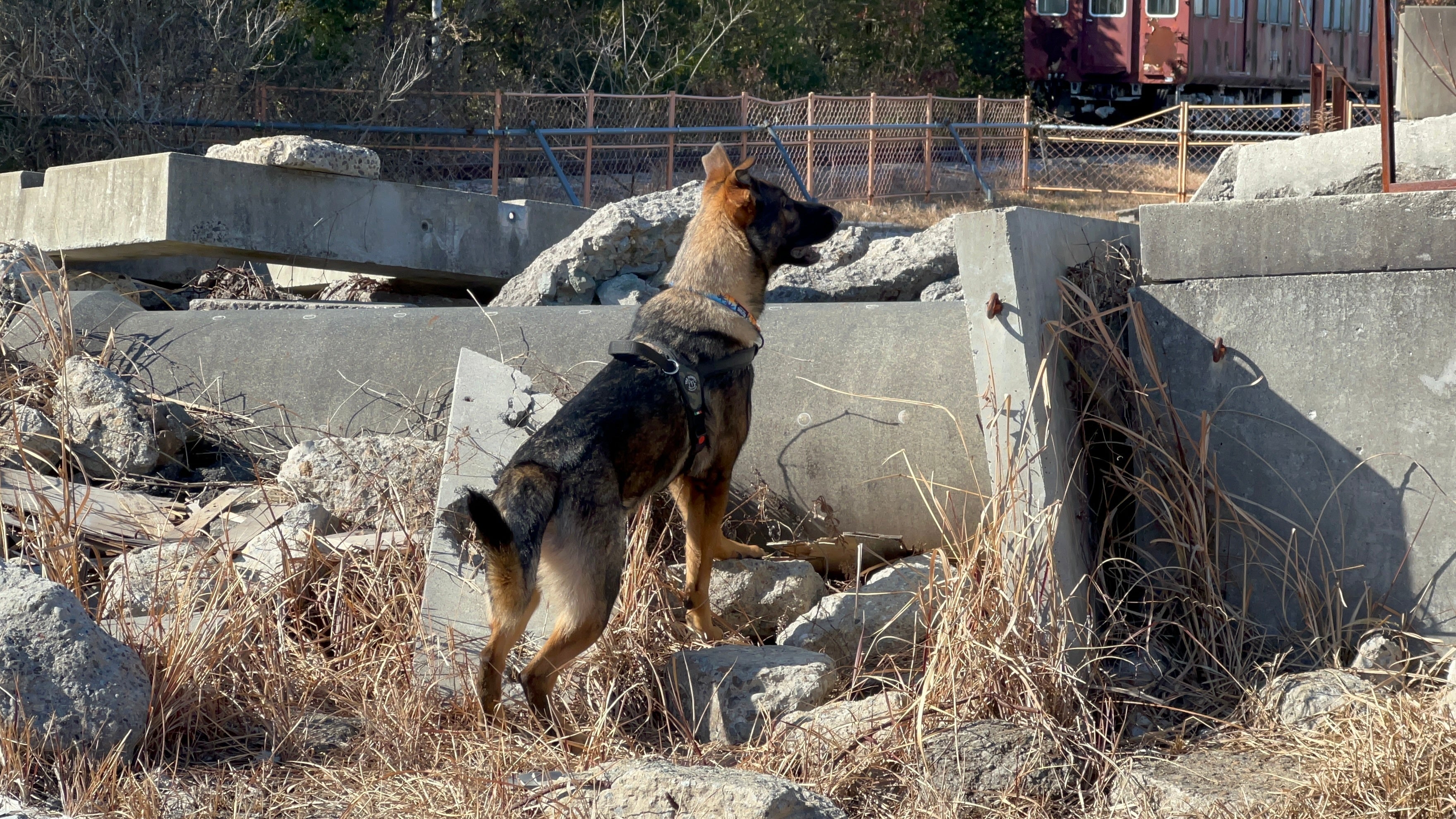 生後3ヵ月頃から昼夜を共にし、信頼関係を築くため基礎訓練を重点的に行いました。現在は瓦礫や山岳などの多様な環境での実践的な訓練にも取り組み、現場を想定して経験を重ねながら着実に救助犬への道を歩んでいます。上手くいくことばかりではありませんが、苦楽を共にしながら侑とともに成長できる喜びがあります。