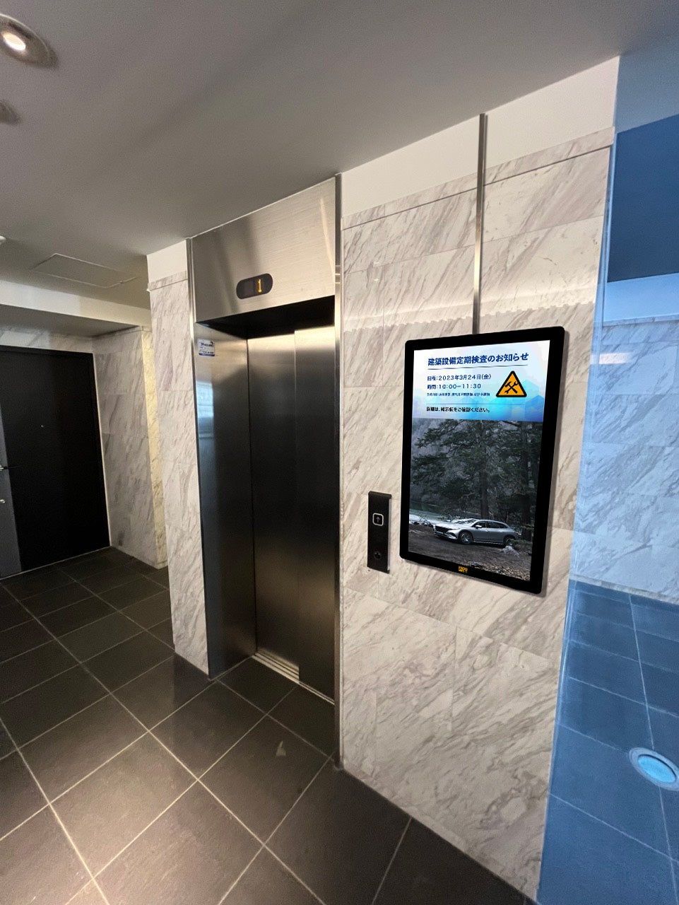 当社では、首都圏および関西圏の分譲マンション・賃貸マンション・オフィスビルのエレベーターホー ルに、無償で設置できるデジタルサイネージをご提供しております。導入をご希望されるマンション理 事会様・不動産オーナー様・不動産管理会社様は、お気軽に当社ホームページのお問い合わせフォームよりご連絡ください。
