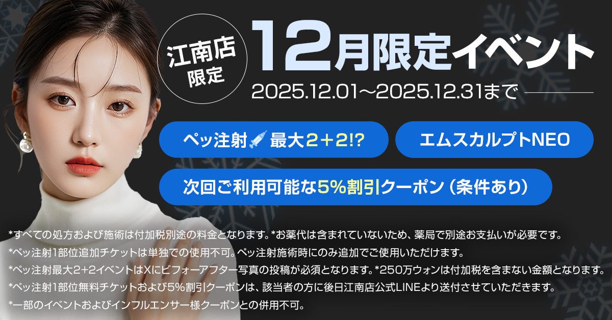 江南 PLAN;S CLINICでは、2025年12月にご来院いただいた方限定で特別イベントを3つご用意しました。