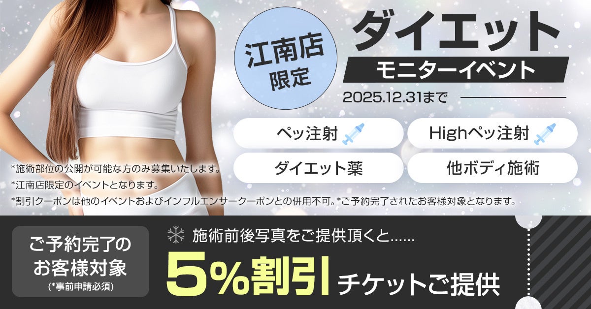 【江南 PLAN;S CLINIC】12月限定イベントおよびダイエットモニターイベントのお知らせ!