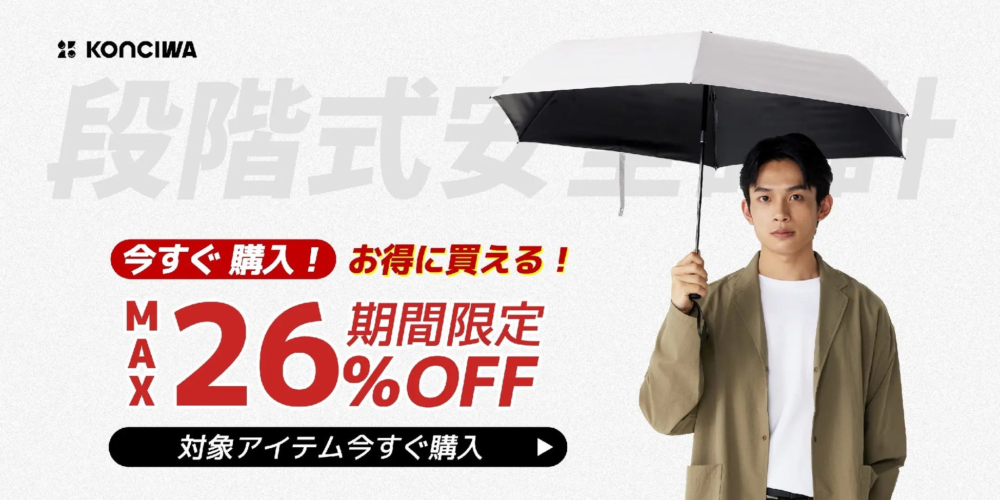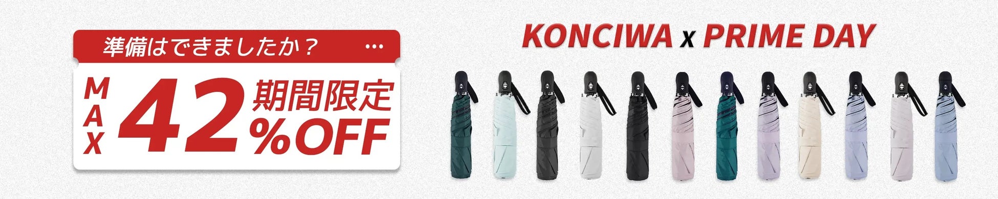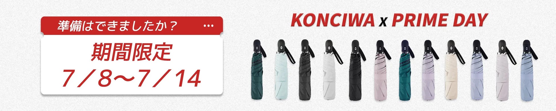 2025年7月8日(火)〜7月14日(月)の期間中、KONCIWAの人気商品を最大42%OFFの特別価格でご提供いたします。夏本番を迎えるこのタイミングに、機能性とデザイン性を兼ね備えた晴雨兼用傘をぜひご検討ください。