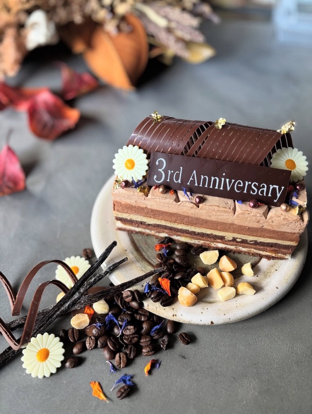 誕生日やお祝いのオーダーメイドケーキの彩りとしてエディブルフラワーで華やかに。
