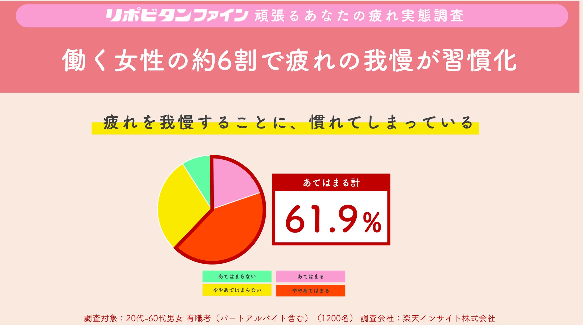 働く女性の、約6割(61.9%)が「疲れをガマンすることに慣れてしまっている」!