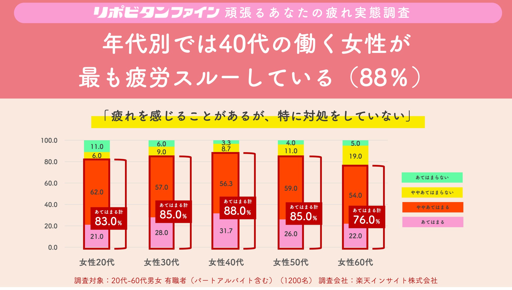 40代働く女性の“疲労スルー”状態が女性年代別で最も高い結果に(88.0%)!