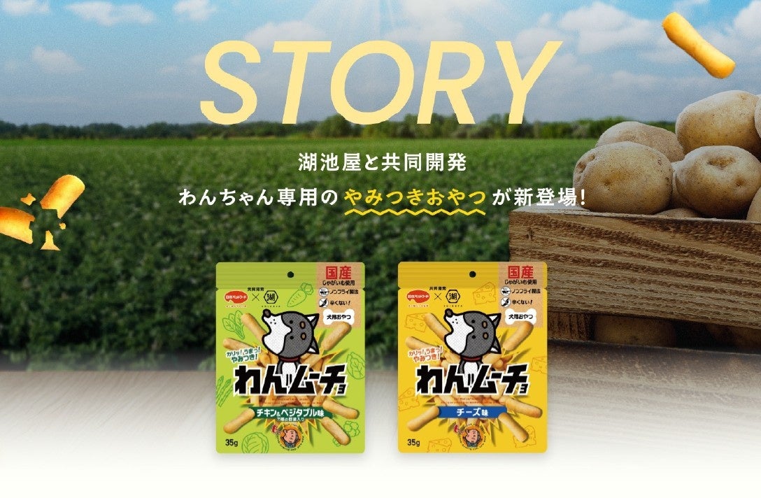 2026年3月2日、日本ペットフード株式会社(代表:代表取締役社長執行役員 片山 俊次)は、株式会社湖池屋(代表:代表取締役社長 佐藤章)とコラボした愛犬用おやつ「わんムーチョ」を発売いたします。