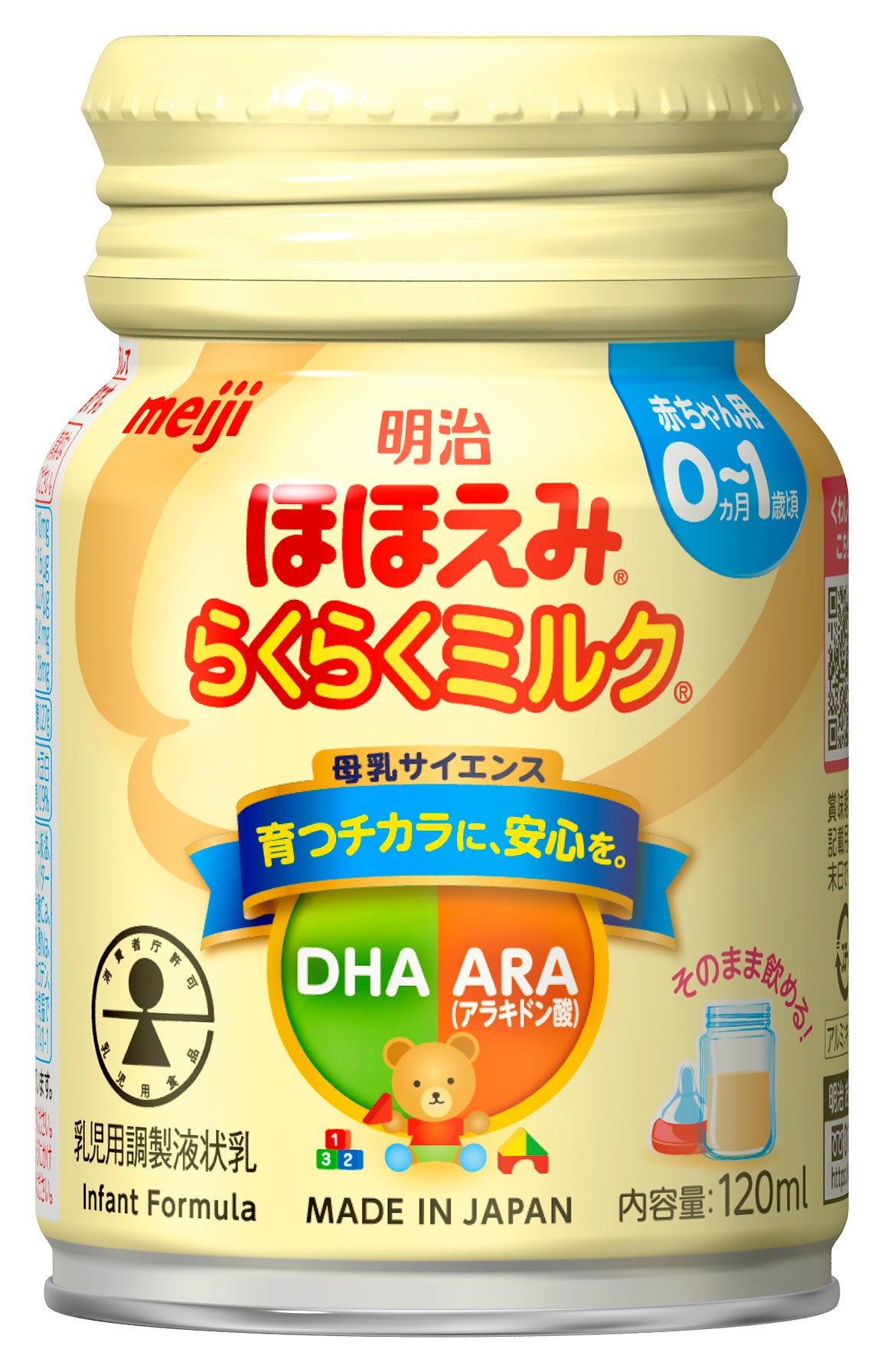 ブタイプの粉ミルク「明治ほほえみ らくらくキューブ」や、液体ミルクの「明治ほほえみ らくらくミルク」と哺乳瓶無しでもミルクが飲める「明治ほほえみ らくらくミルク アタッチメントⅡ」などを展開しています。