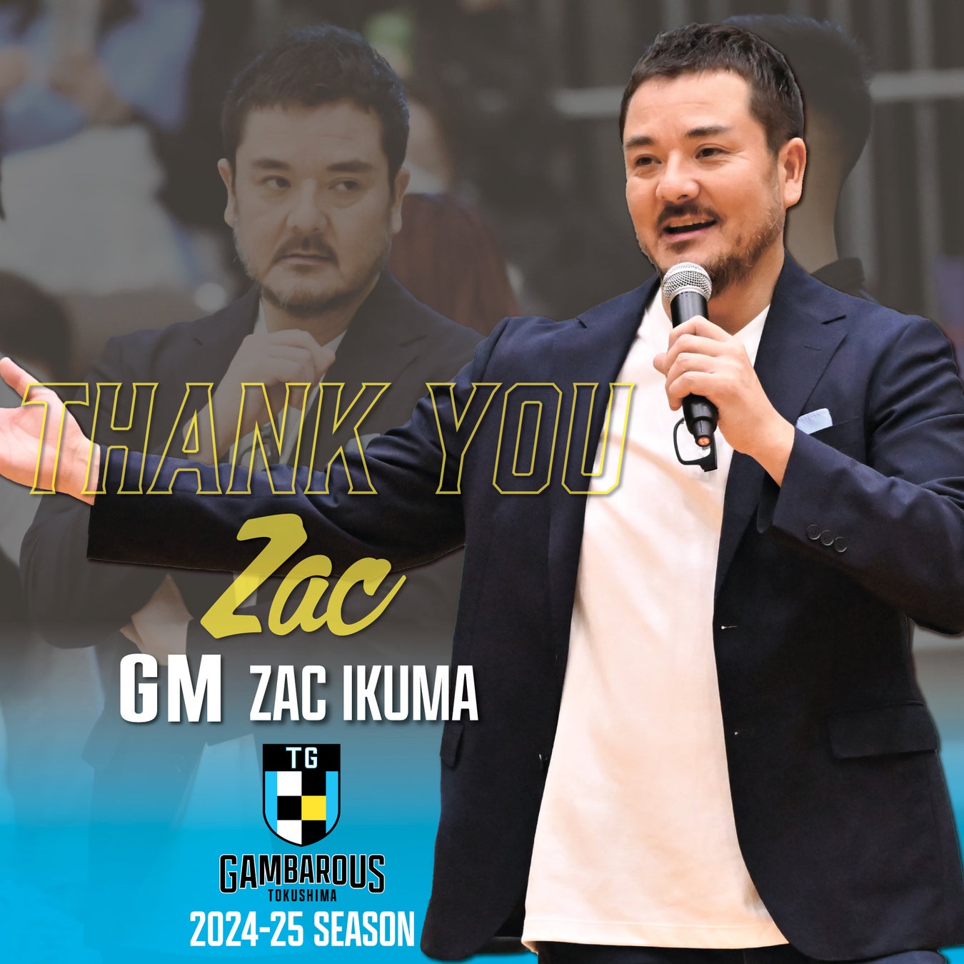 徳島ガンバロウズでは、2024-25シーズンをもってザック生馬ゼネラルマネージャーとの契約が満了となりますのでお知らせします。