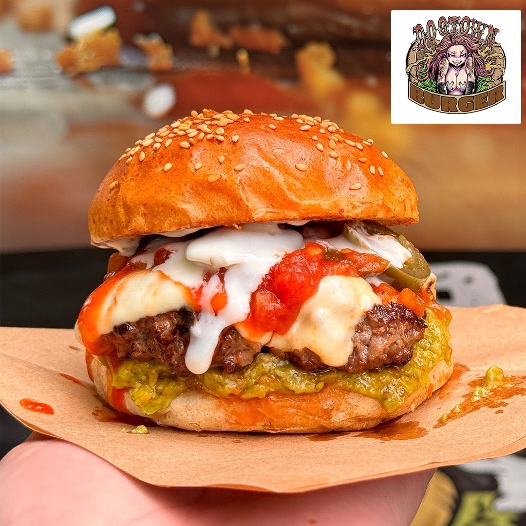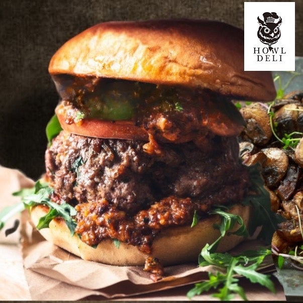 フェスなどに出店しているHOWL DELIオリジナルハンバーガーにトリュフ香るボロネーゼ(ミートソース)をかけた