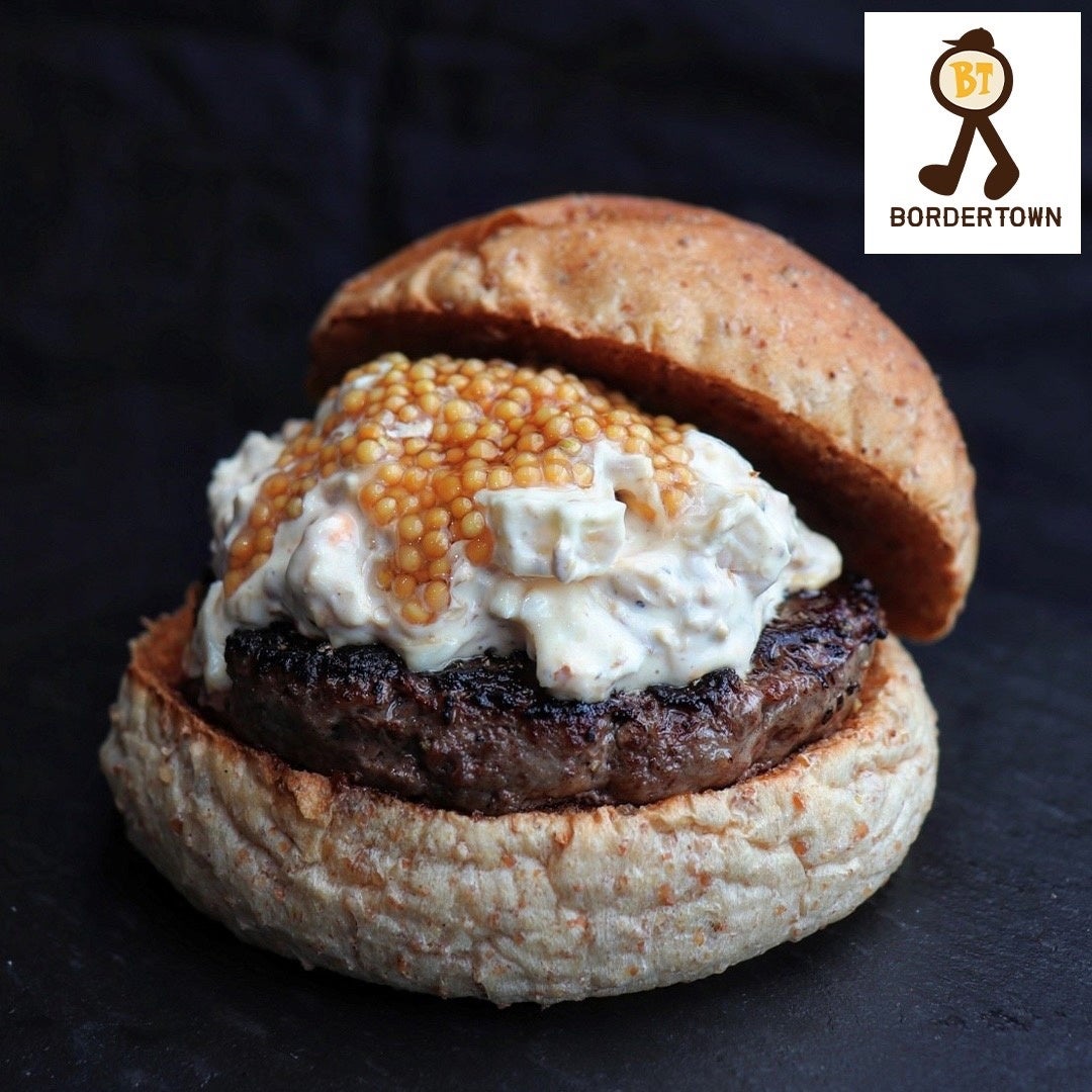 茨城県産黒毛和牛『常陸牛』100%の絶品パティに蓮根の食感がアクセントの和風タルタルを合わせ、仕上げに自家製マスタードソースを加えたバガチャン限定のスペシャルバーガー。