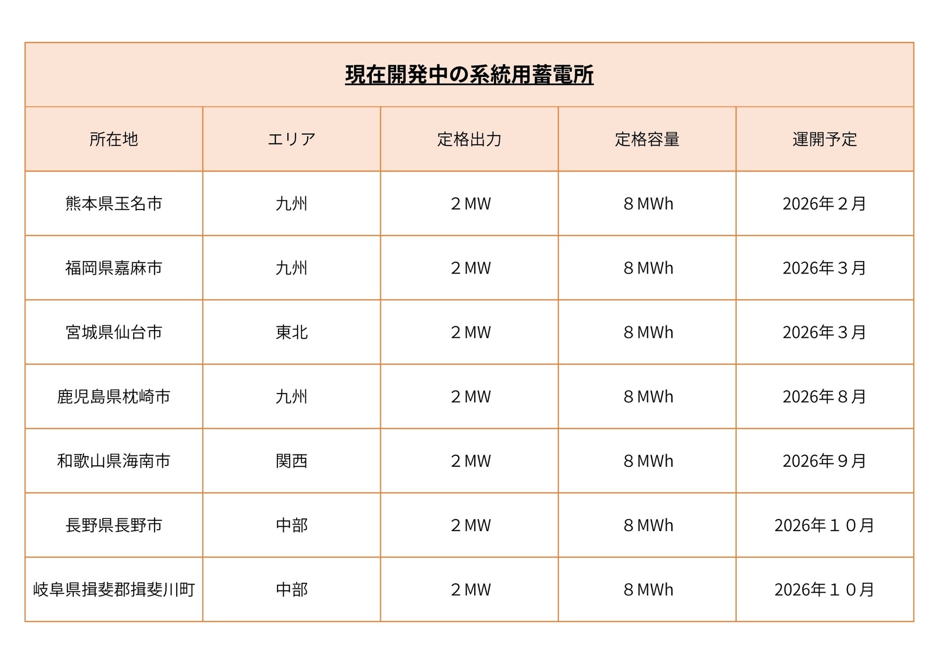 2026年末までに7か所の蓄電所を運転開始系統用蓄電所事業の収益化を加速!