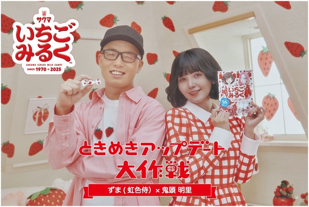 サクマ製菓株式会社(本社:東京都目黒区中央町、代表取締役:山田流石)は、2025年9月1日から2026年3月31日まで、いちごみるく55周年を記念し『ときめきアップデート大作戦』キャンペーンを実施しております。55周年記念WEB CMやイラストレーターコラボパッケージ、プレゼント企画など実施中の内容に加え、第二弾としてずま(虹色侍)さん(以下、ずまさん)と、鬼頭明里さんによるコラボレーション楽曲動画を2025年10月1日からWEB上で公開します。