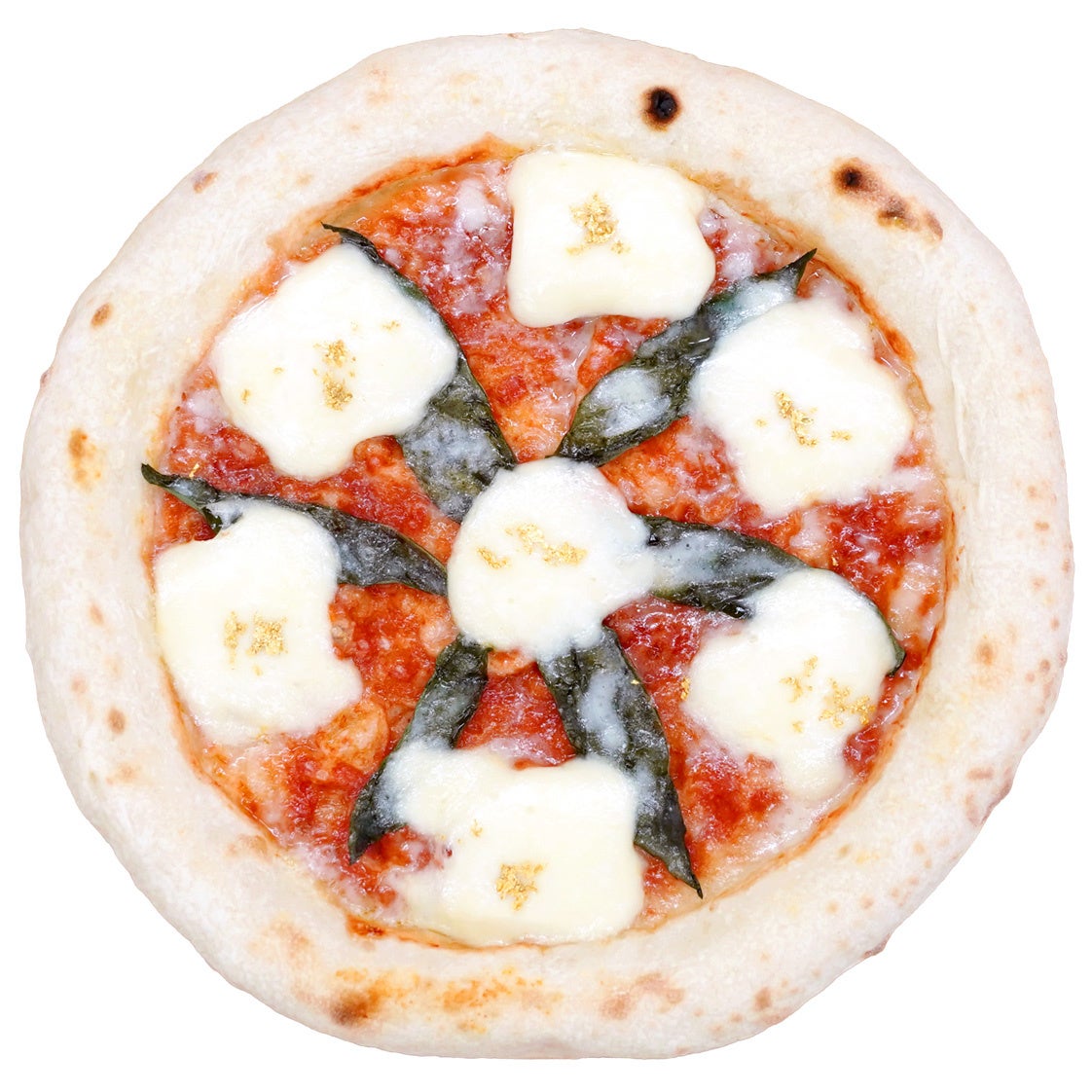 年末年始にふさわしく金沢の金箔で華やかに仕上げました。バジルの香りとチーズのとろける旨みが広がる、美味しさと華やかさを備えた特別感のあるマルゲリータです。