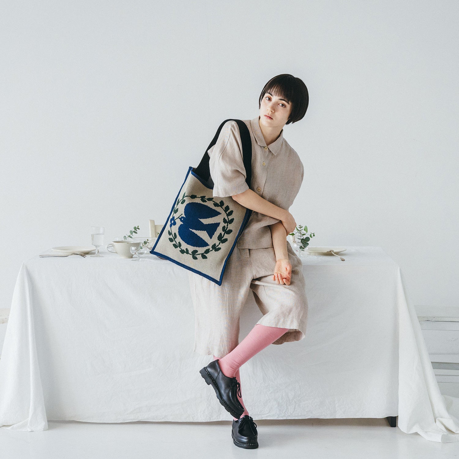 スタンプニットバッグ