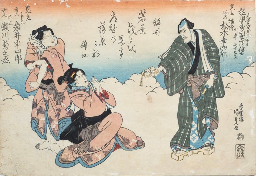 三人の役者が描かれたこの図は“死(しに)絵(え)”。