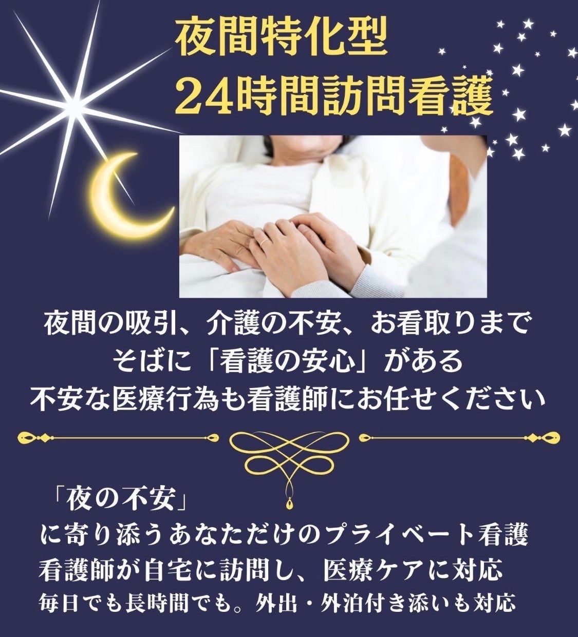 夜間・24時間対応のプライベート看護サービスを提供。