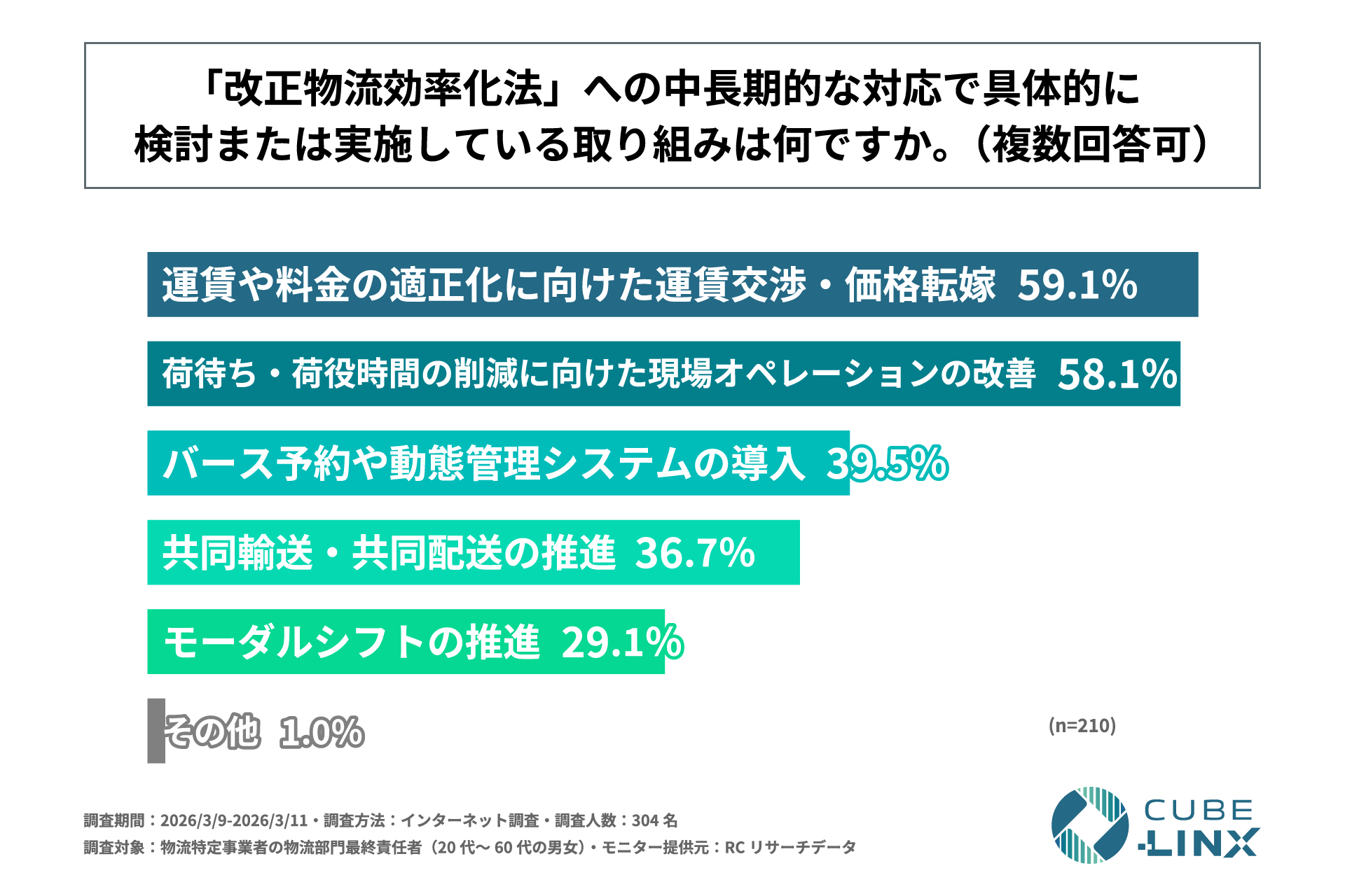 物流特定事業者による改正物流効率化法への中長期的対応の最大障壁は「システム導入や設備投資に必要な予算・投資コスト」!株式会社CUBE-LINXが「改正物流効率化法への対応実態に関する調査」を実施!