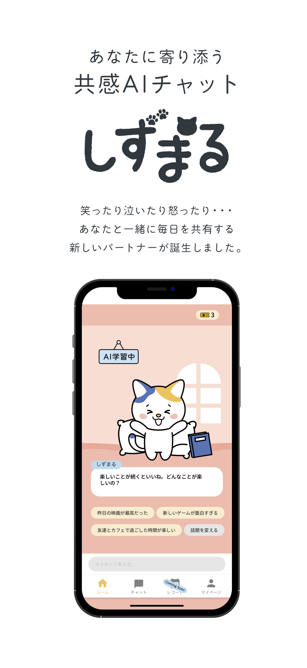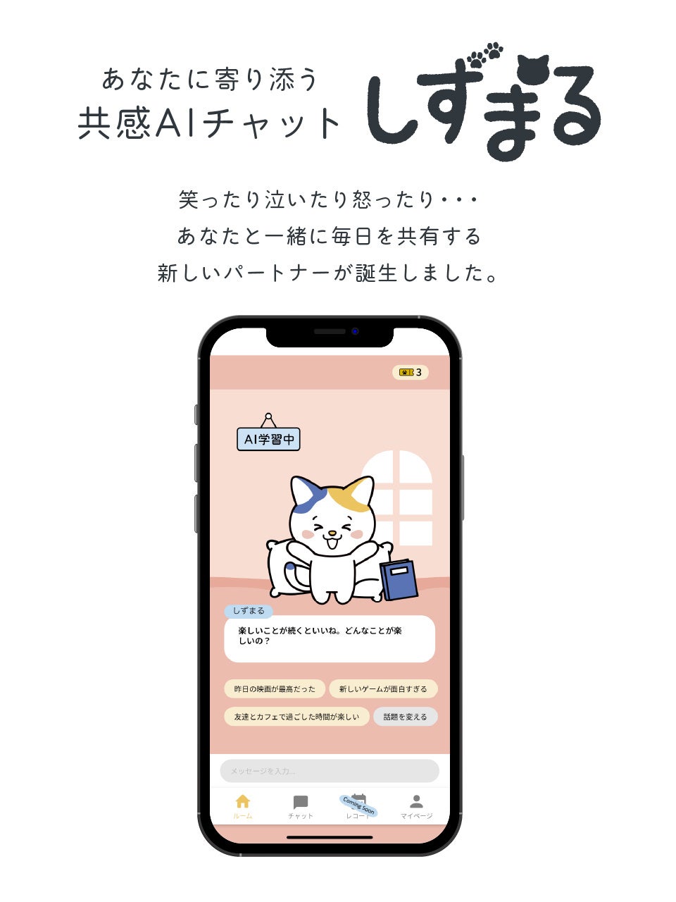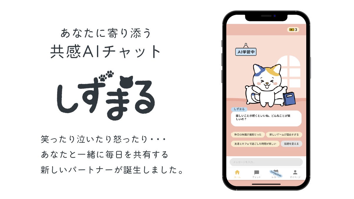 スタンプで「しずまる」の優しさに触れた方は、ぜひ元となるAIチャットアプリもチェックしてみてください。アプリ版では、あなたの言葉にいつでも耳を傾け、気持ちを穏やかにする「しずまる」とのチャットが楽しめます。