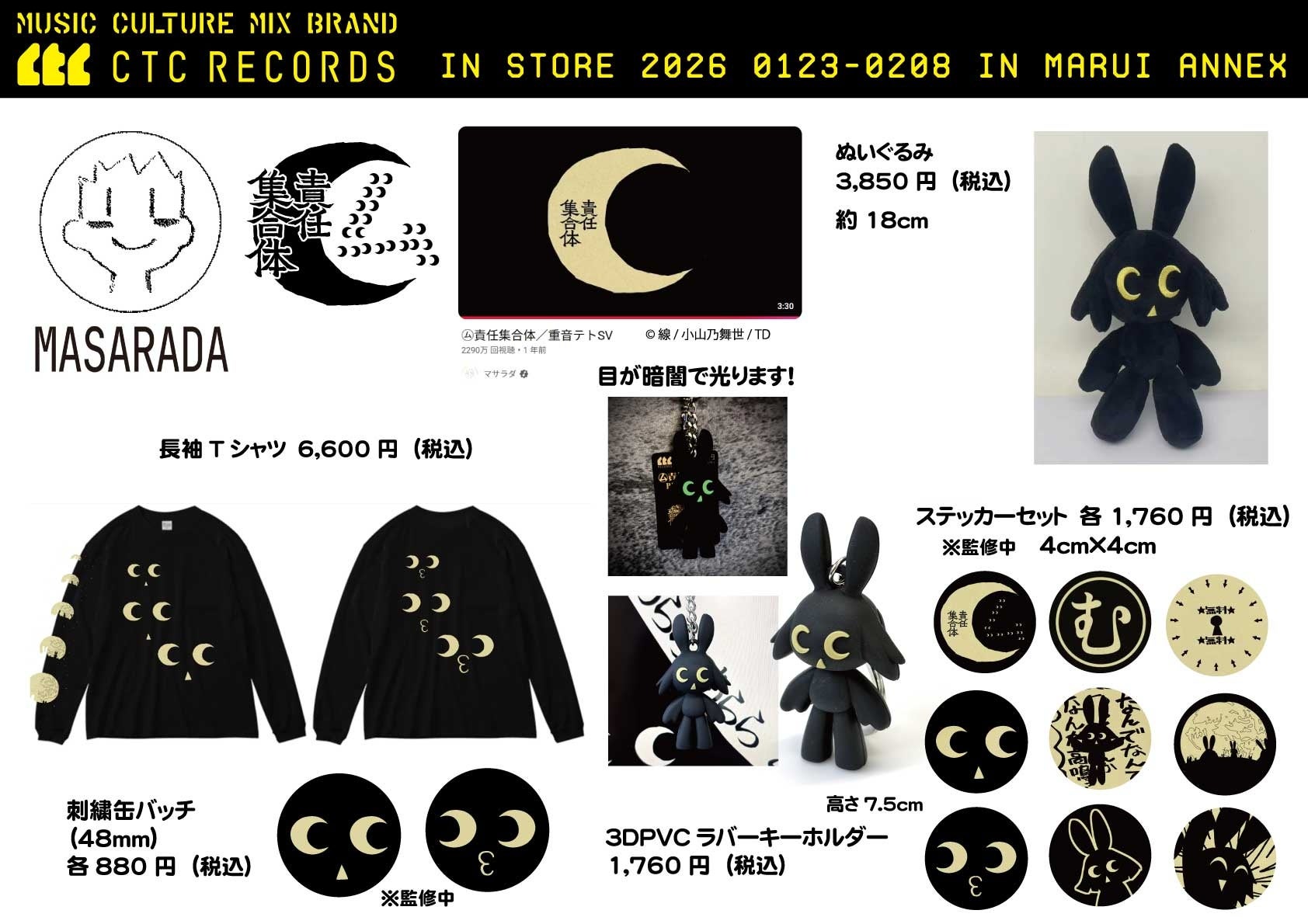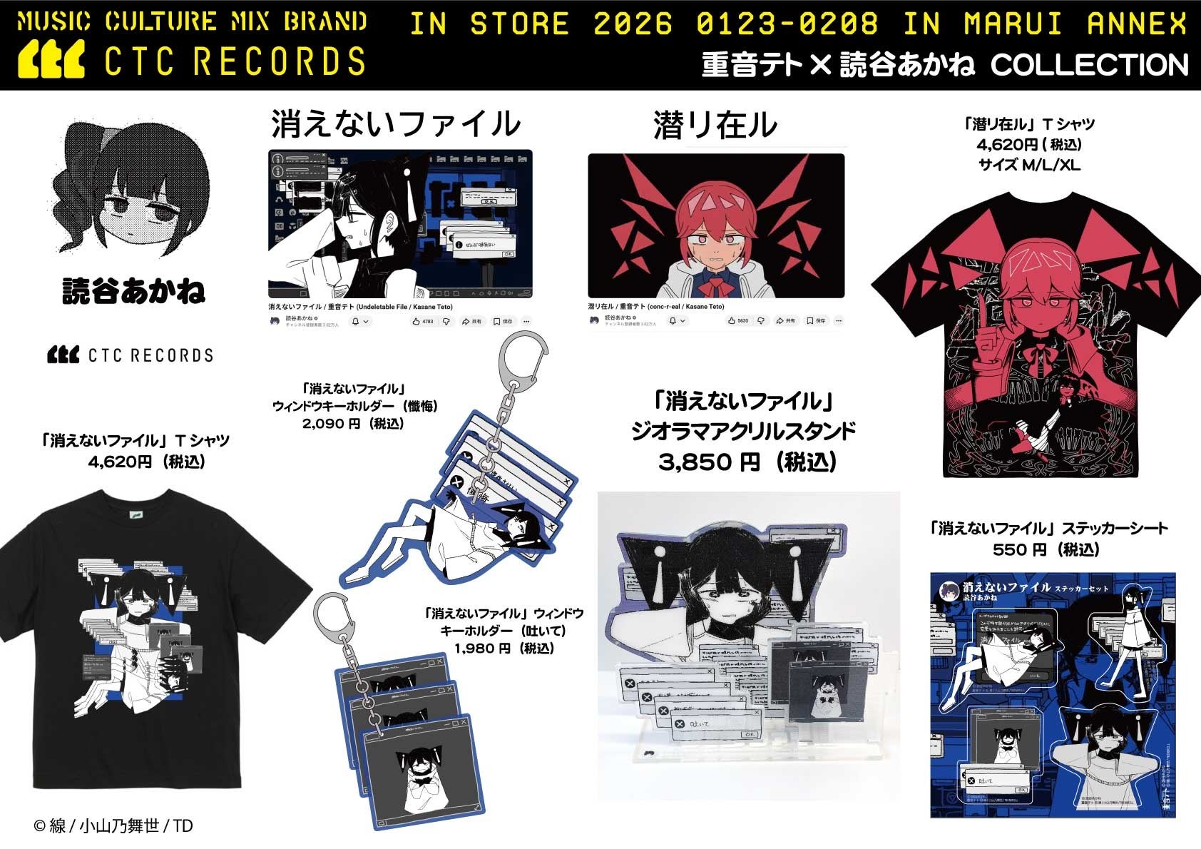 本POP UPでは、CTC RECORDSを代表する人気ボカロPたちの楽曲にインスパイアされた新作グッズが多数登場。