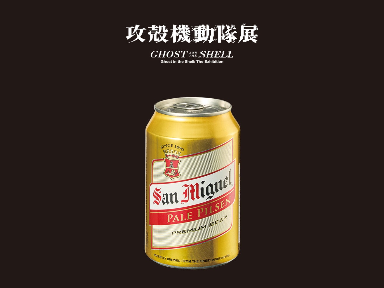 3種のビールをご用意。95年の『GHOST IN THE SHELL/攻殻機動隊』の中でバトーが愛飲するサン・ミゲールに加え、フチコマ(レッド)とウチコマ(グリーン)をイメージした赤と緑のビールも用意。いずれもバーガーとの相性ばっちりです。
