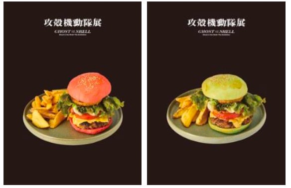 本展の開催期間中、作品の世界観を味わうことができる本展限定のコラボレーションメニューをTOKYO NODE CAFEにて2月1日(日)より提供開始いたします。「攻殻機動隊」シリーズに登場する「タチコマ」と「フチコマ」のイメージカラーのグルメバーガーをはじめ、ラテのフォームをハッキングした笑い男ラテや「タチコマ」をモチーフにしたリンゴ味のクリームソーダ、1995年の『GHOST IN THE SHELL / 攻殻機動隊』の中で愛飲する「サン・ミゲール」に加えて、タチコマ、フチコマをイメージした赤と緑のビールなど、作品の世界が広がる多彩なグルメラインナップをぜひお楽しみください。