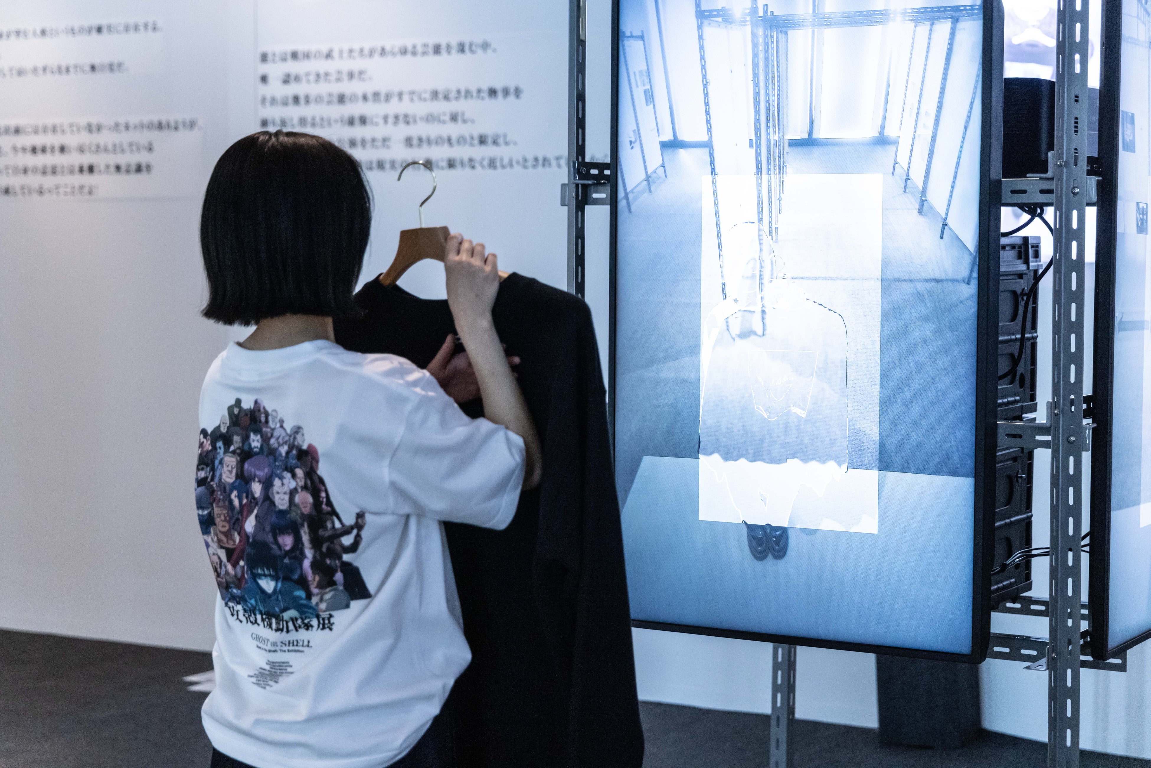 また、原画や体験展示に加え、『攻殻機動隊』が投げかけてきた問いを、現代の表現として再解釈したコラボレーション作品も展示します。監視カメラなどに使用されている画像認識AIに認識されにくくなる『AI監視社会のカモフラージュ』、攻殻機動隊が描いた「光学迷彩」を彷彿とさせるファッション『SCREEN』、『GHOST IN THE SHELL』が提示した“身体と道具の境界の揺らぎ”というテーマの自身の身体を撮影するセルフポートレートによって撮影された『you’re mine #000 / #001』『you’re mine #001』、ヒューマノイドAlter3が能楽師の動きを学び自律的に舞うパフォーマンス作品『傀儡神楽 ALTER the Android KAGURA』、攻殻機動隊の世界線と自身の自我を重ね合わせ〈サイボーグ女性として生きる一生〉を思考実験的に考察する作品『EGO in the Shell』など、『攻殻機動隊』に影響されクリエイターが制作した作品が登場します。