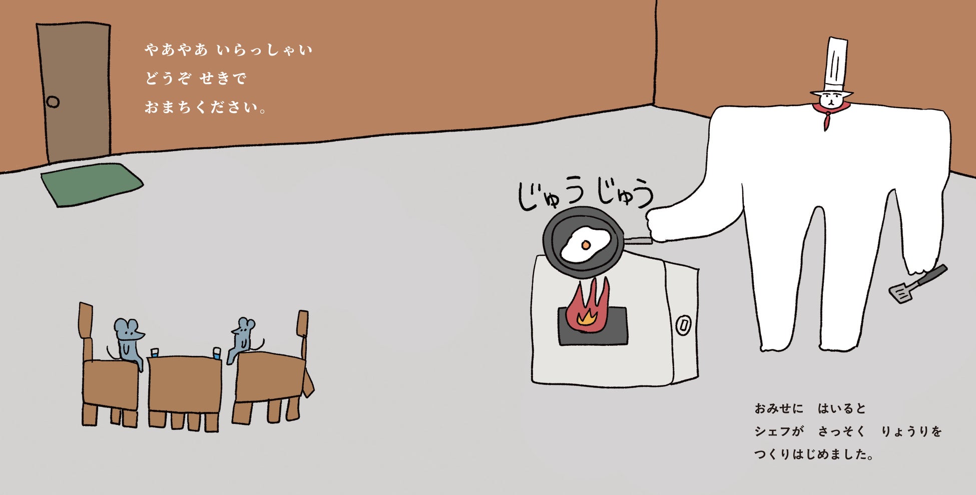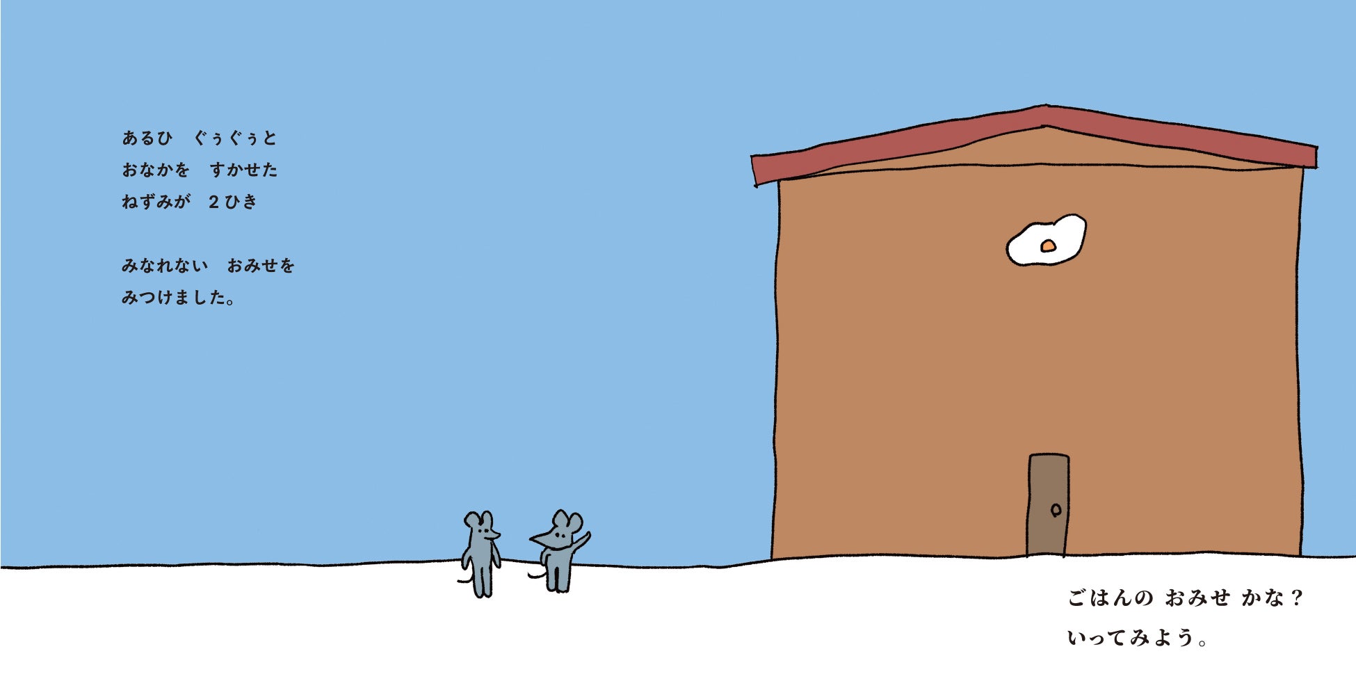 ある日、お腹をすかせた2ひきのねずみが見なれないお店を見つけます。