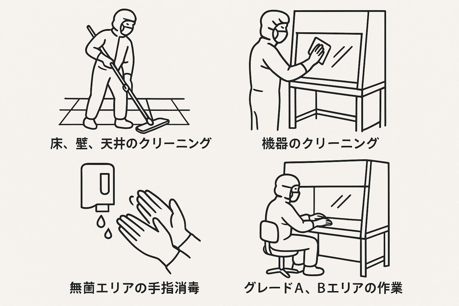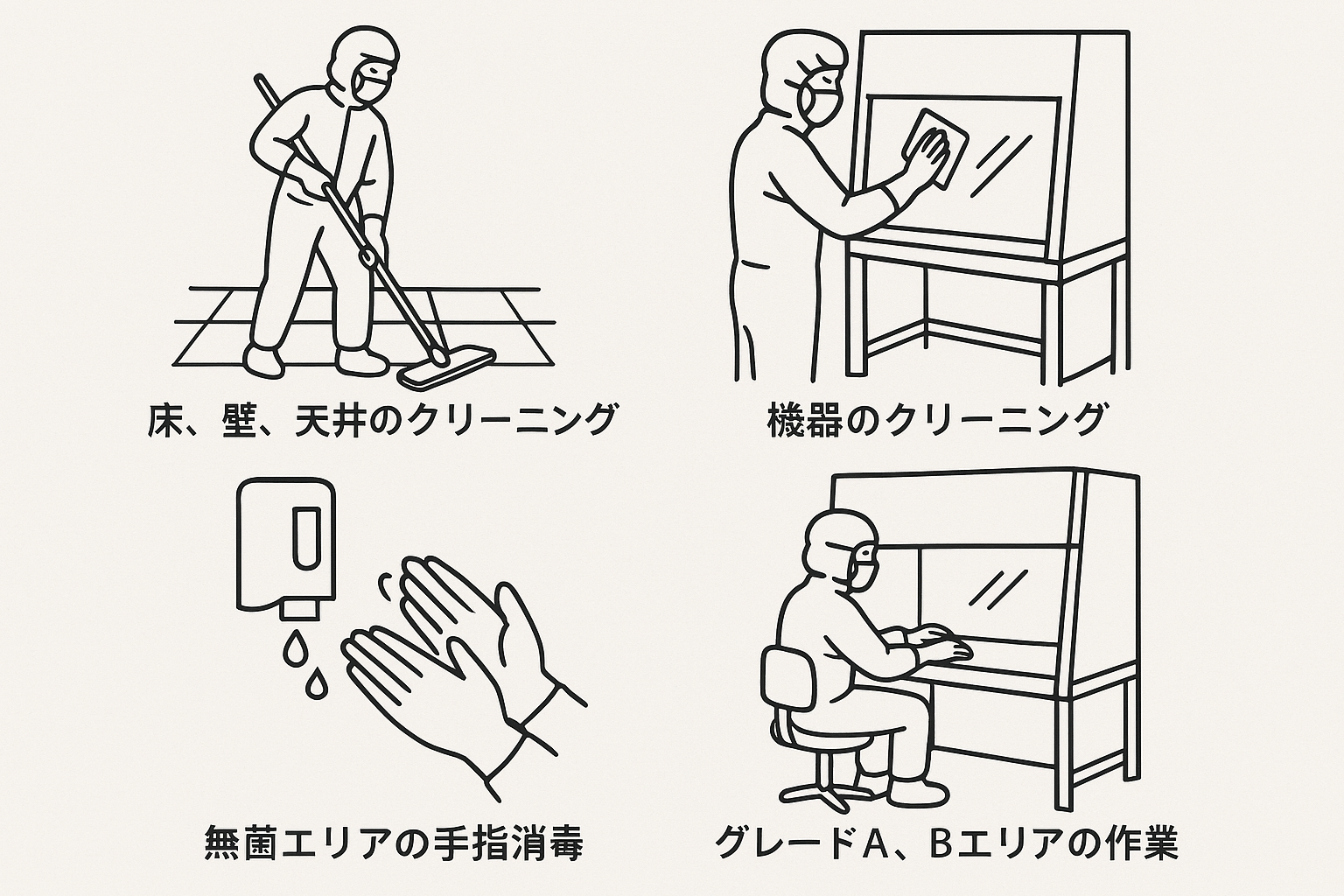 QTエタノールは、こうした高度な無菌環境(グレードA,Bエリア)での清掃および消毒作業をより安全・快適に実施することを可能とし、微生物汚染のリスクを低減および無菌製造工程の安定運用を支援します。