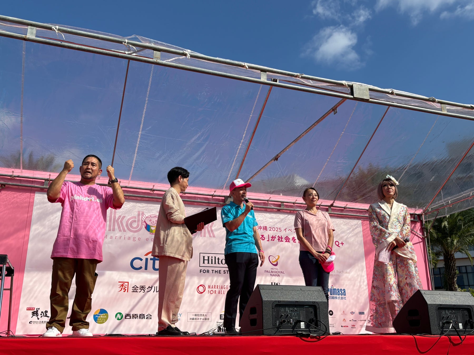 ピンクドット沖縄は、「すべての人が、自分らしく生きやすい社会を」という思いを持つ人や、アライズとしてサポートする方々が、ピンク色のものを身につけ集い、理解を深め、その思いを共有し、表現するイベントです。2013年に初めて開催されて以来、全国的に注目を集め、現在では沖縄県を代表するLGBTQ啓発イベントとして定着。第8回目となる2025年のピンクドット沖縄は、“小さな「知る」が社会を変える”をテーマに、ヒルトン沖縄北谷リゾートとダブルツリーbyヒルトン沖縄北谷リゾートに隣接する北谷フィッシャリーナ中央広場をメイン会場として、様々なライブパフォーマンスやパネルディスカッション、パレード行進等が行われました。