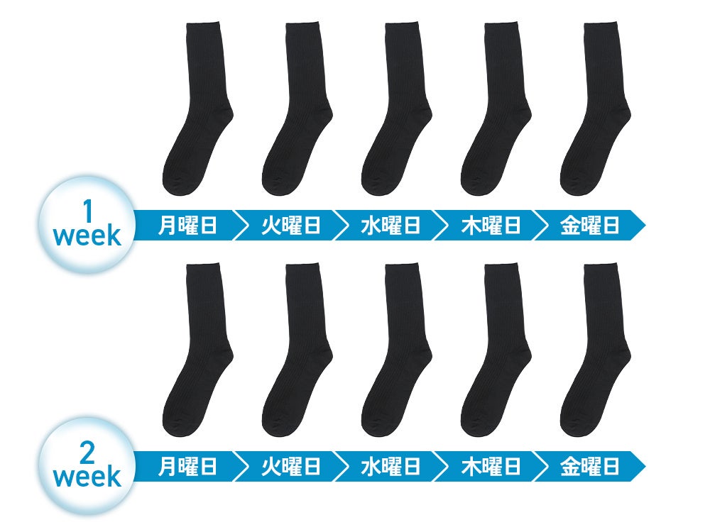 IGRESSのビジネスソックスは、同色同柄仕様のため、洗い替えの心配を減らし、忙しいビジネスマンの身支度をサポートします。
