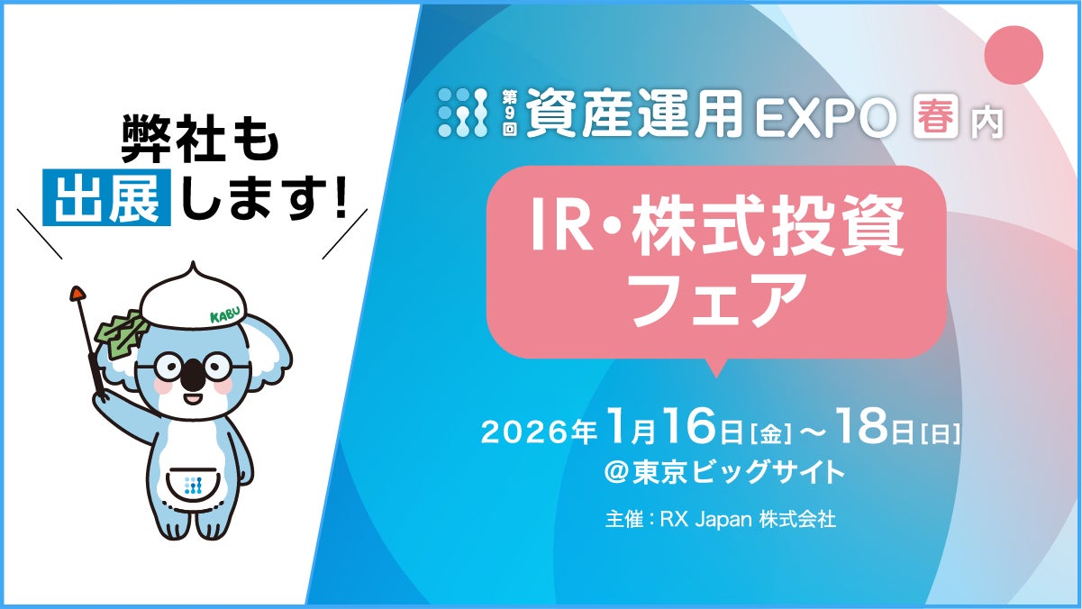 日本精化株式会社(本社:大阪市中央区、代表取締役執行役員社長:矢野 浩史)は、2026年1月16日(金)~18日(日)に東京ビッグサイトで開催される、第9回 資産運用EXPO【春】に出展いたします。投資家の皆様に当社の事業や成長性について直接お話しさせていただき、ご理解いただくことを目的としております。