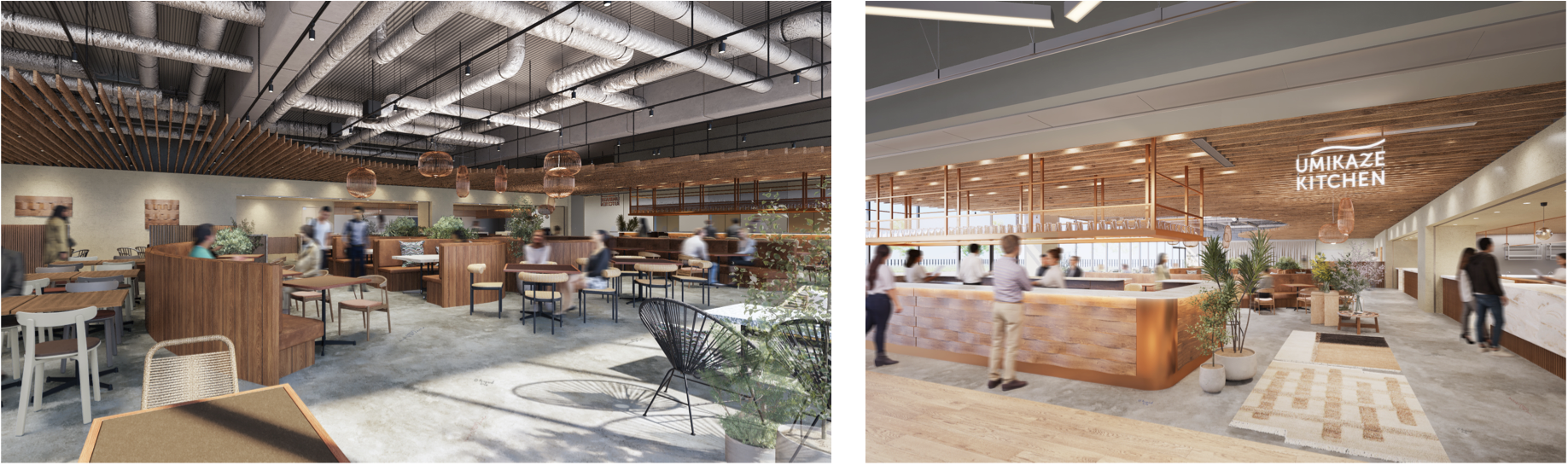 「UMIKAZE KITCHEN」は、“ちょっと良い日常”をコンセプトに、家庭で馴染みのある料理を気軽に愉しめるコンフォートファミリーダイニングです。大人から子どもまで、それぞれの「好き」が一つのテーブルに集い、自然と会話が生まれる、心地よい食の時間を提供します。また、東京ドリームパークにおけるメインダイニングとして、施設内でさまざまなエンタテインメント体験を満喫した後も、“食”を通じてその余韻を楽しめる場として位置付けています。