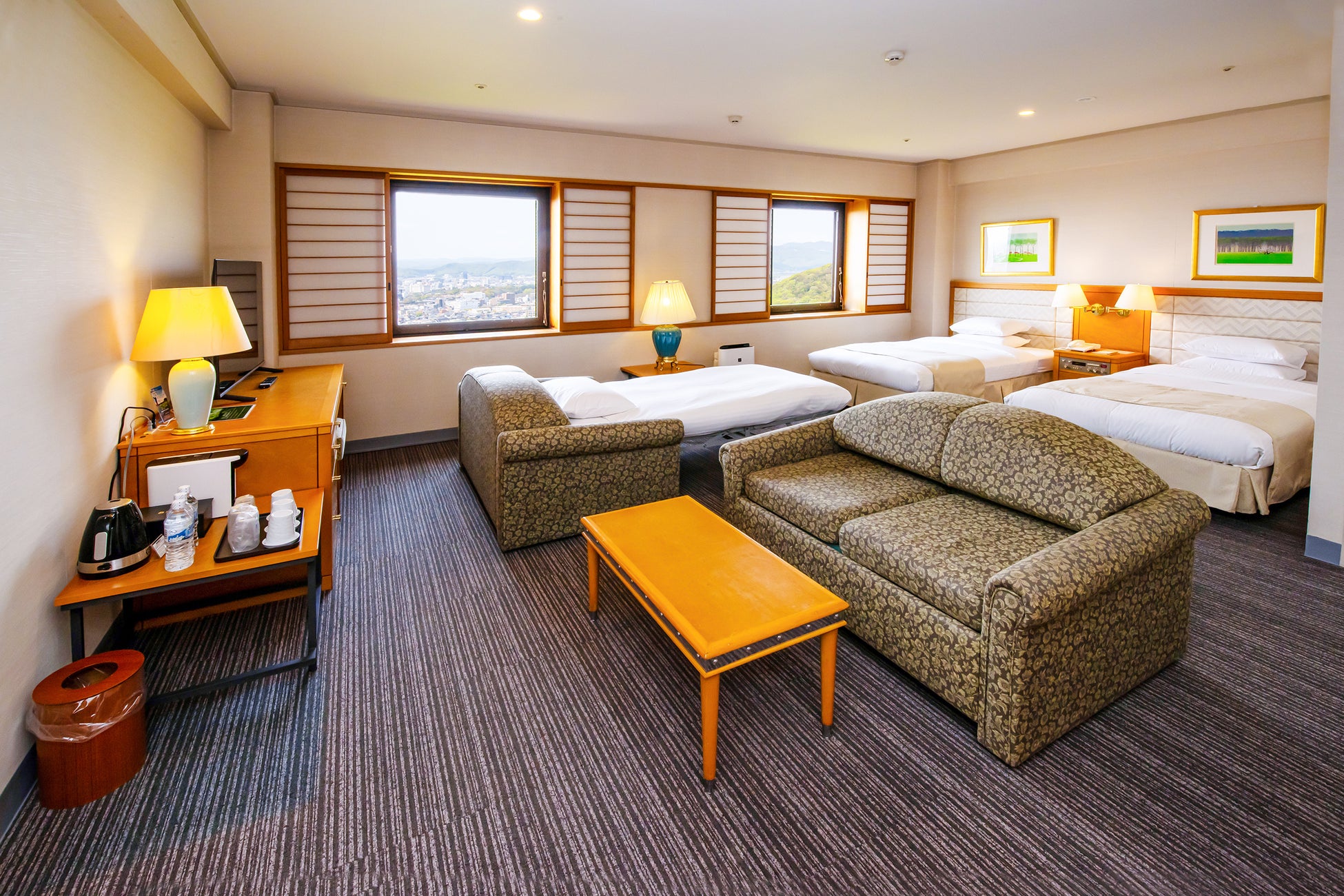 春はさまざまな想いが交差する季節でもあります。新たなステージに旅立つ前に親子で故郷の景色を眺めながら過ごしたり、結婚記念日に思い出の宿泊をしたり、懐かしい友との再会を祝う一日など、宿泊される方それぞれに想いが溢れます。シングル、ツイン、ダブルなどの部屋以外にも、ファミリーやグループにおすすめの客室をご用意。また、宿泊者専用施設の露天風呂&サウナでは、春のやさしい空と街の風景を眺めながら極上の時間をお愉しみいただけます。