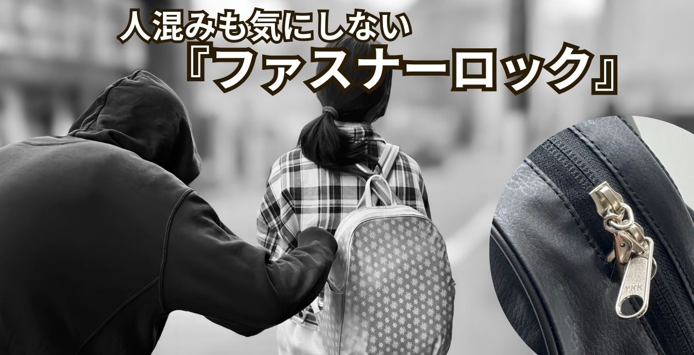 美しさと安全性を両立。バッグの底には貴重品などを隠して置ける隠しファスナーや、長財布が入る大きな内側ファスナーポケット、死角になりやすいファスナーにロック機能をつける構造など、都市部や旅先での盗難リスクを軽減する独自のデザインを採用しました。