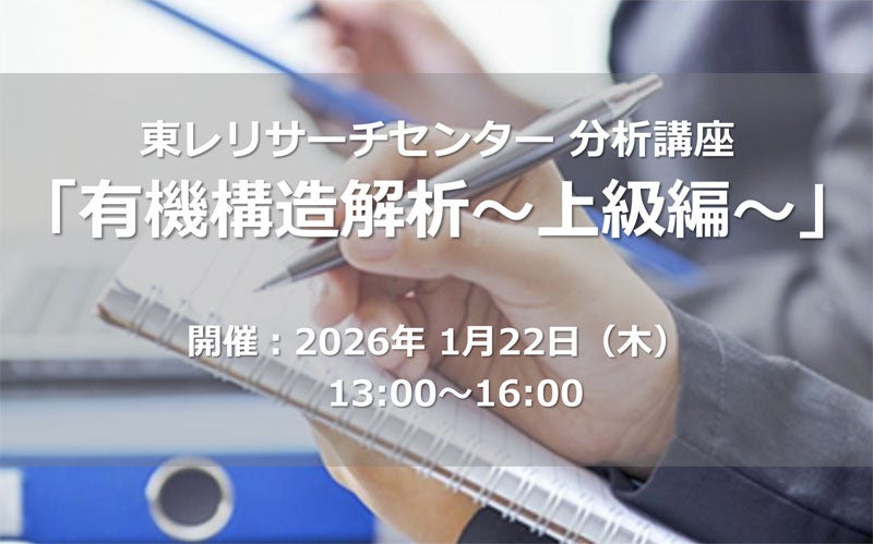 【東レリサーチセンター分析講座】有機構造解析をより深く学ぶ~IR、NMR、MSの応用測定、ポリマーや低分子量化合物の詳細構造解析、化学分解分析までを網羅~
