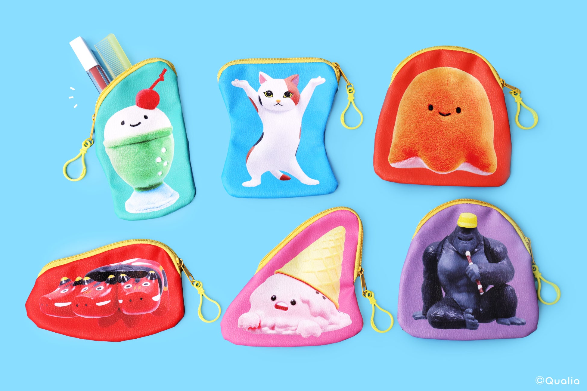 Qualiaの人気商品がプリントされた実写ポーチ。