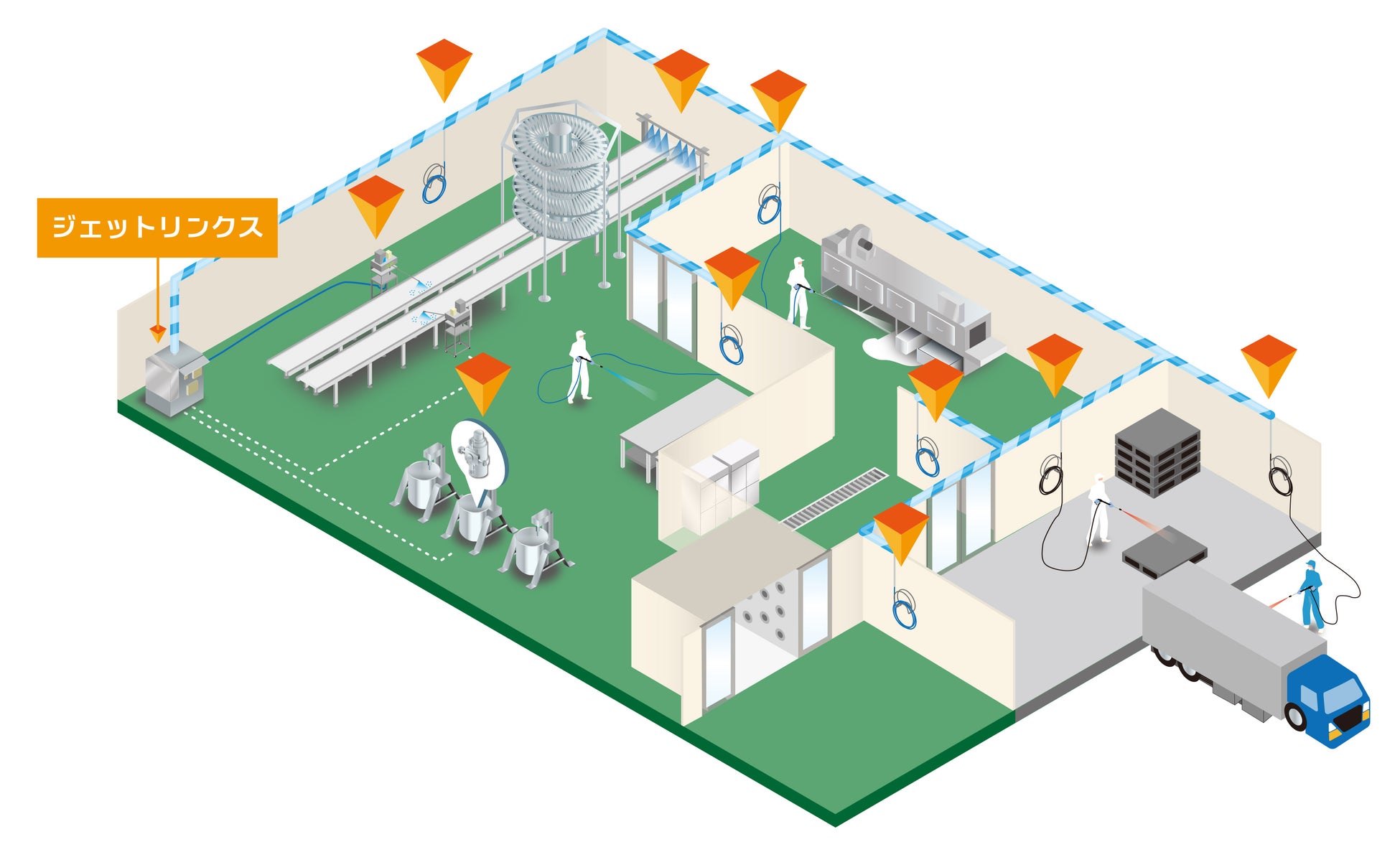 工場の規模や洗浄する場所の数により、オーダーメイドも可能です。お客様に最適な仕様をご提案をいたします。