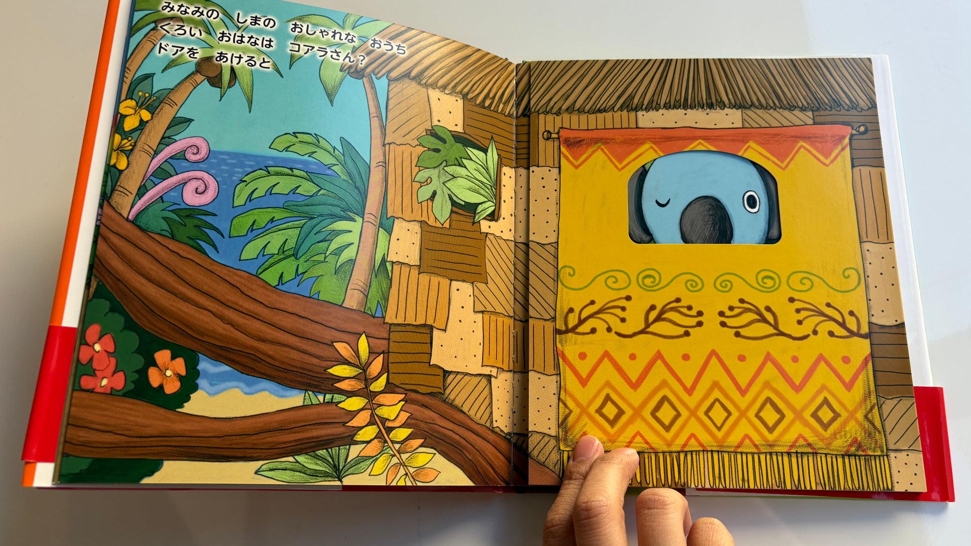 ちょっとだけ覗き見できて、手を伸ばせば届きそうだけど、でもなんだか様子がつかめない扉の向こうの世界。子どもたちは、そんな未知の世界に好奇心のアンテナをいっぱいに広げます。「中にいるのはカエルさん、それとも??」ありったけの知恵と想像力をはたらかせて全力で考えながら、絵本の世界に没入していきます。